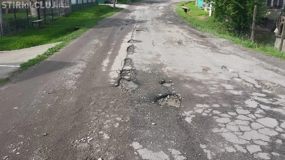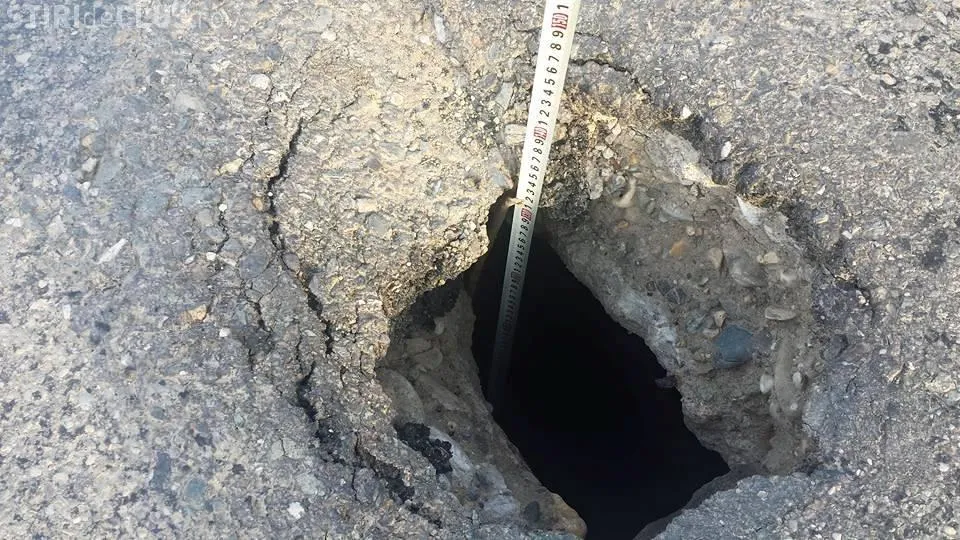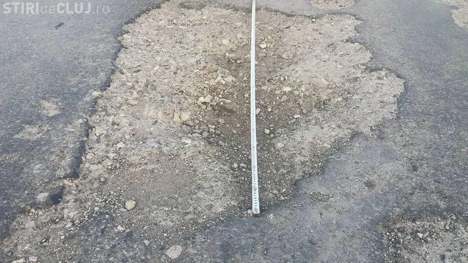Drumul din Cluj cu ”cratere” de aproape 2 metri lungime. S-a făcut o petiție pentru repararea sa FOTO