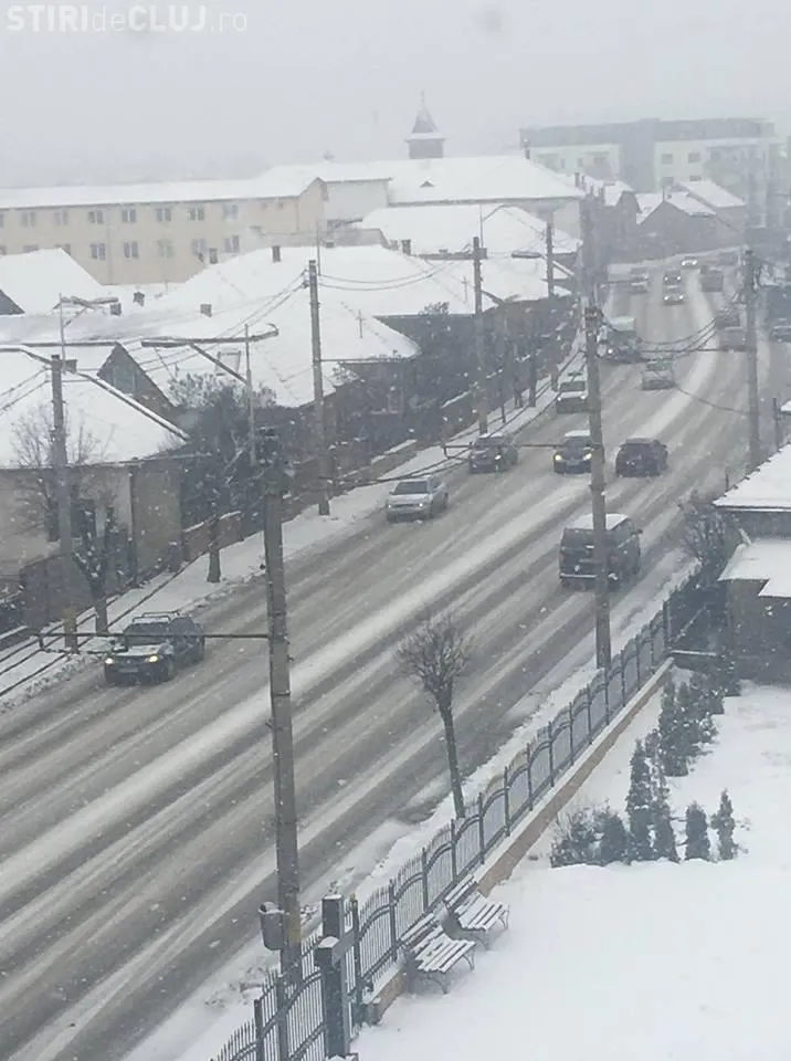 Drumul spre Aeroportul Cluj acoperit de zăpadă - FOTO