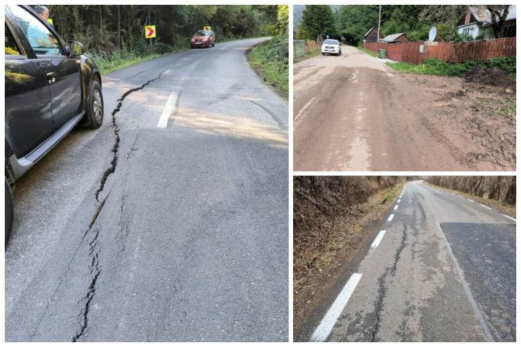 Drumuri afectate de alunecări de teren la Cluj! Au apărut fisuri și crăpături pe șosea care pun în pericol șoferii. Străzile vor fi reparate