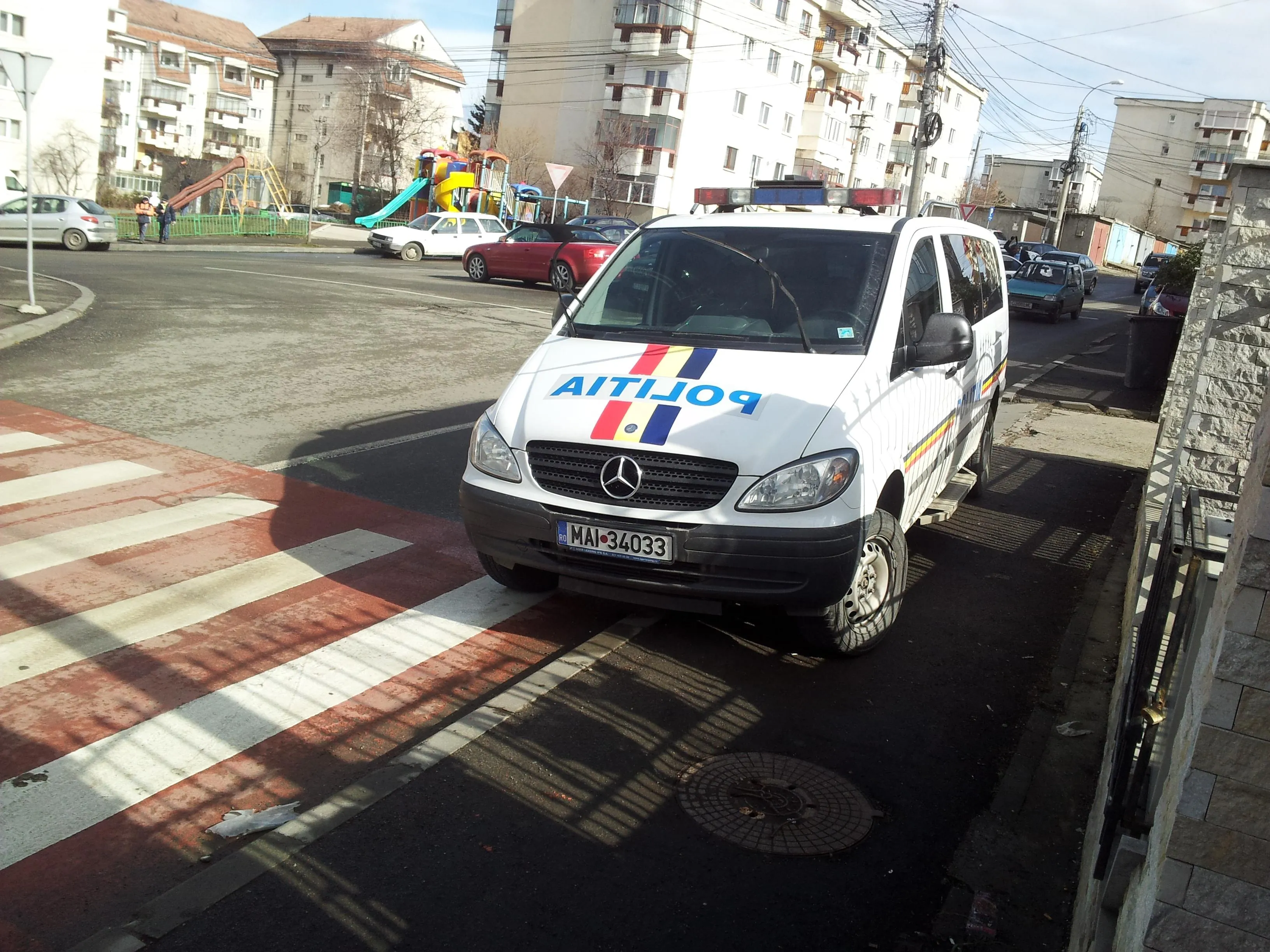 Un clujean a fotografiat o dubă a IPJ Cluj parcată pe trecerea de pietoni pe strada Meteor, din cartierul Zorilor.