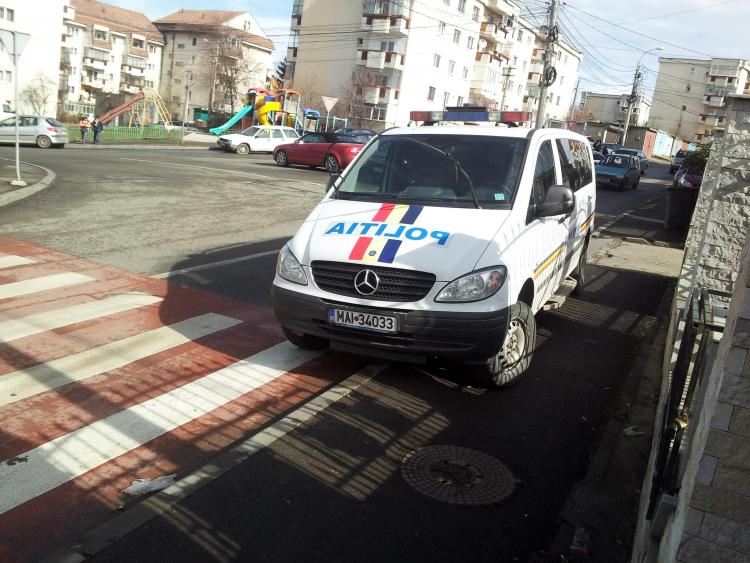 Clujeanul a fotografiat ”un autoturism al politiei parcat pe trecerea de pietoni pe str. Meteor, nr. 53. Evenimentul a fost surprins astazi, 25.02.2013, ora 12.20. Se pare ca un trecator cu simt civic le-a lasat un mesaj celor care au parcat acolo prin ridicarea stergatoarelor”, ne-a scris Marian Grațian.