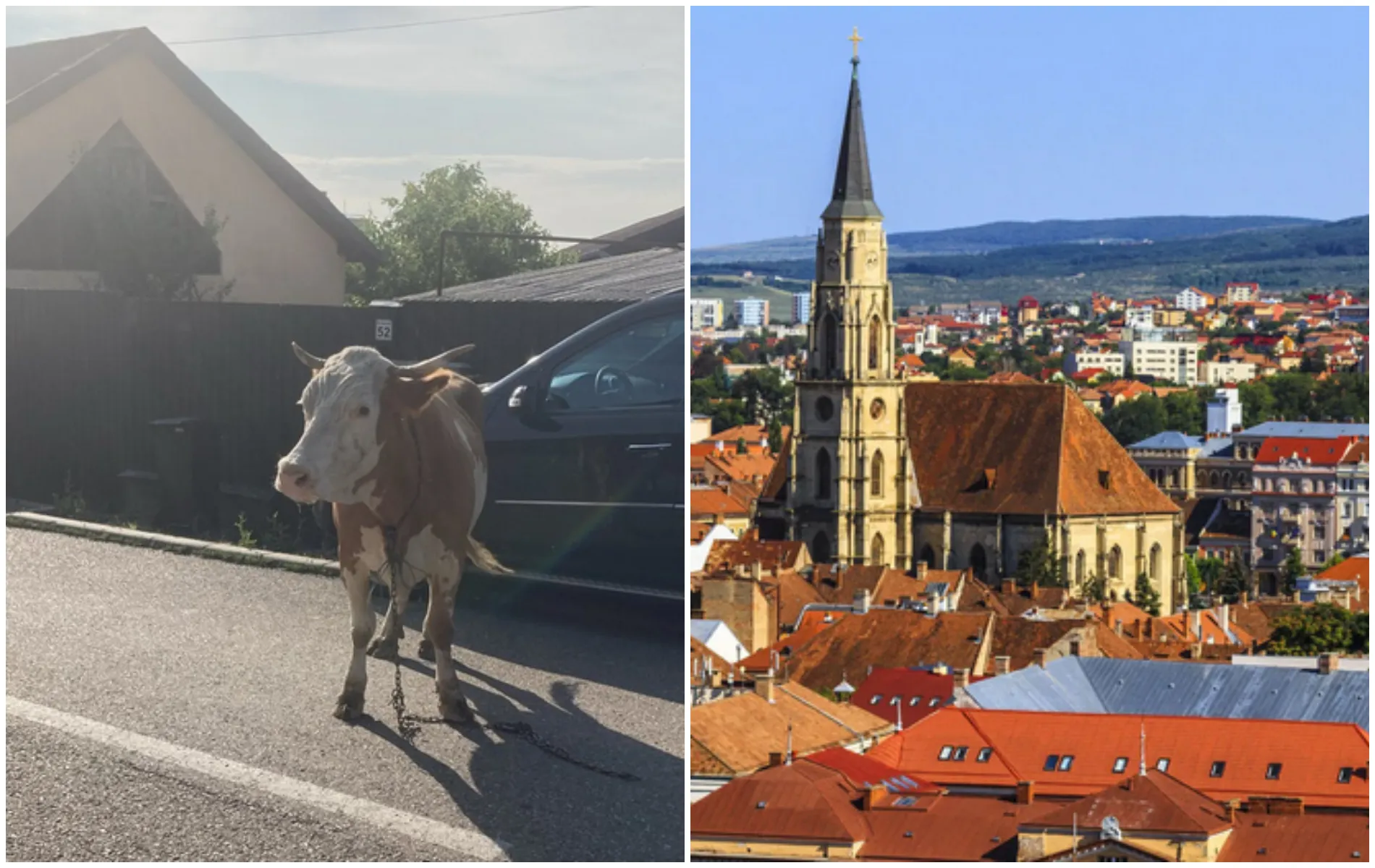 În Cluj-Napoca, nu doar caii ies la păscut pe asfalt. Așadar, pe lângă porci mistreți, câini maidanezi sau căprioare, iată că și o văcuță s-a pierdut pe o uliță a urbei.