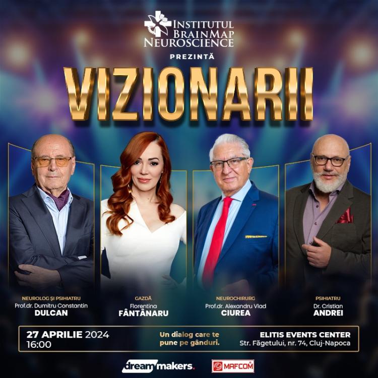 Sâmbătă, 27 aprilie, de la ora 16:00, centrul de conferințe Elitis Center găzduiește conferința “VIZIONARII”, care îi are invitați pe trei dintre cei mai buni specialiști din România, în domeniul neuro-chirurgiei, neurologiei și psihologiei.