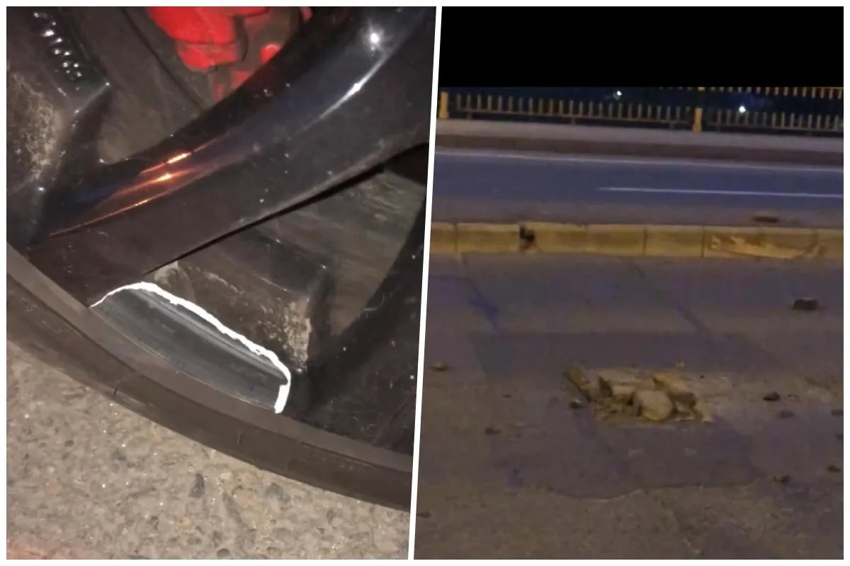 Din imaginile surprinse se poate observa cum craterul lovit nu este la prima peticire, bucăți din materialul folosit pentru a-l repara în trecut, fiind împrăștiate pe carosabil.