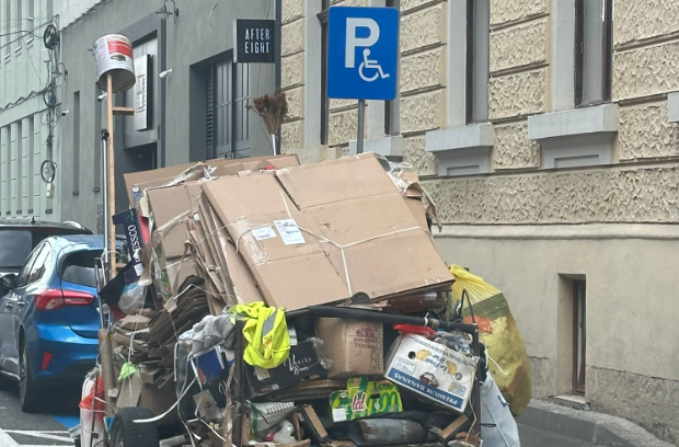 Pe o stradă din centrul Clujului, în locul mașinilor, a fost ,,parcat” un munte de gunoaie.