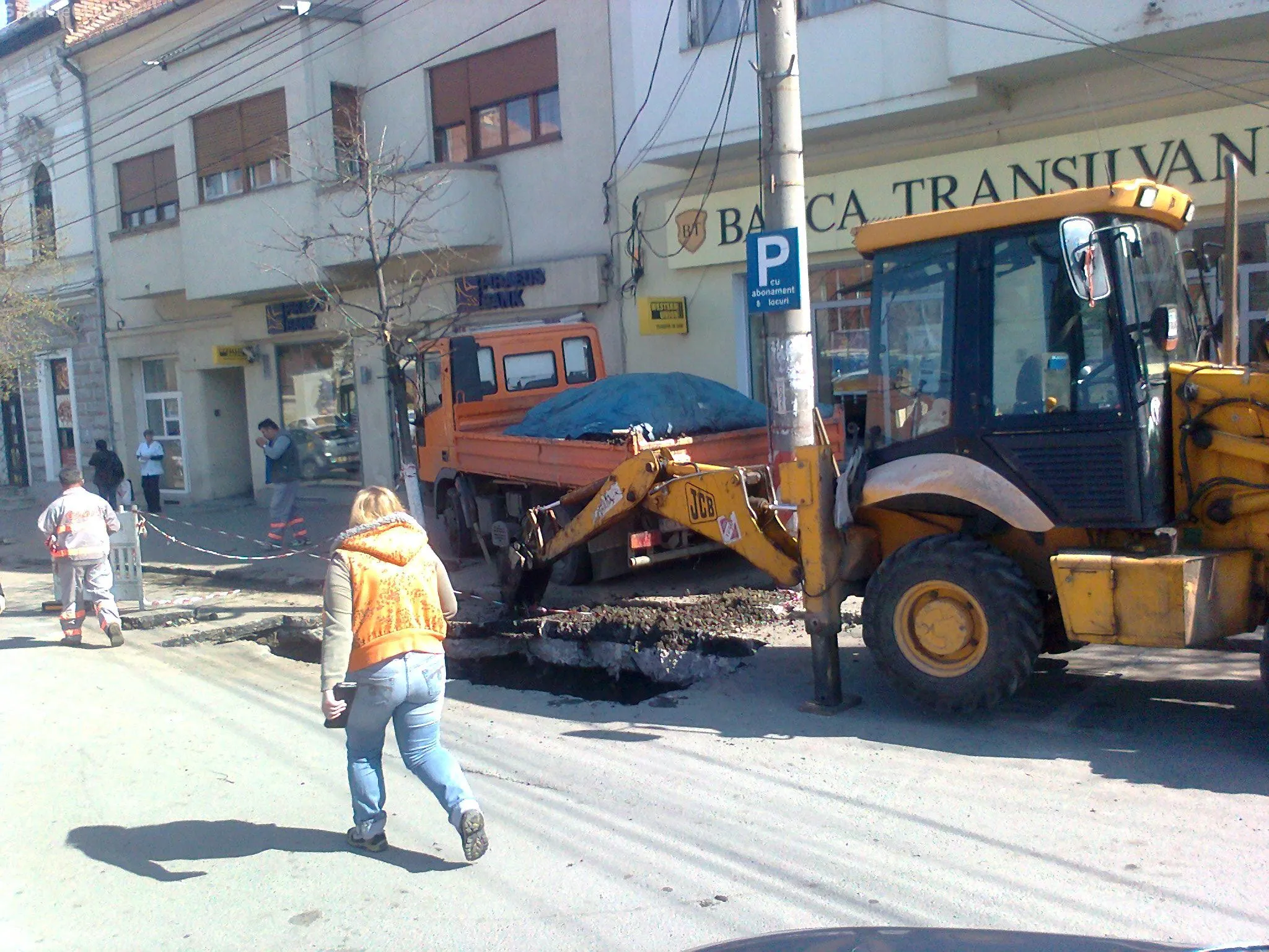 Muncitorii de la E.ON Gaz au spart si in Piata Cipariu pentru a repara o defectiune.