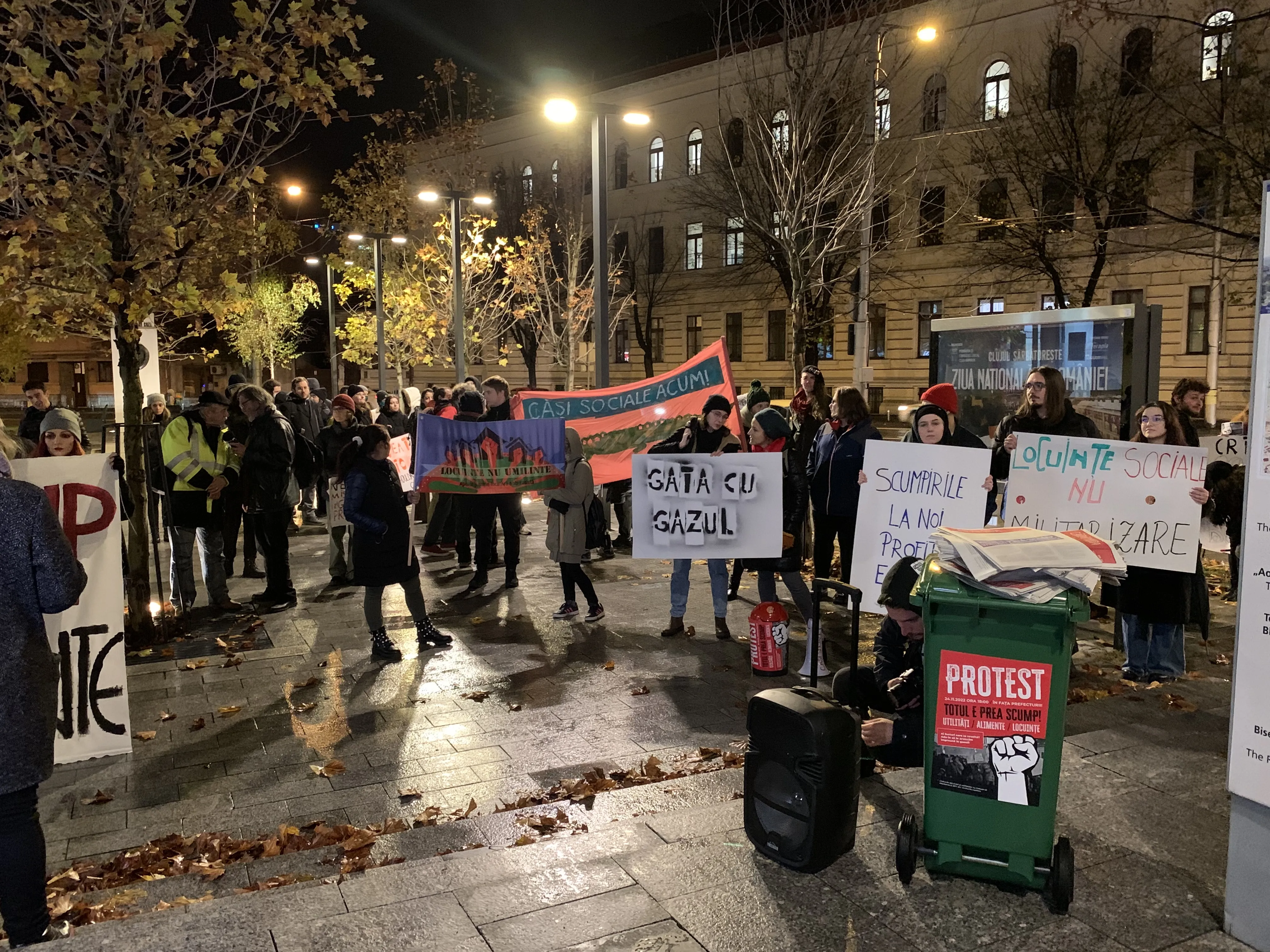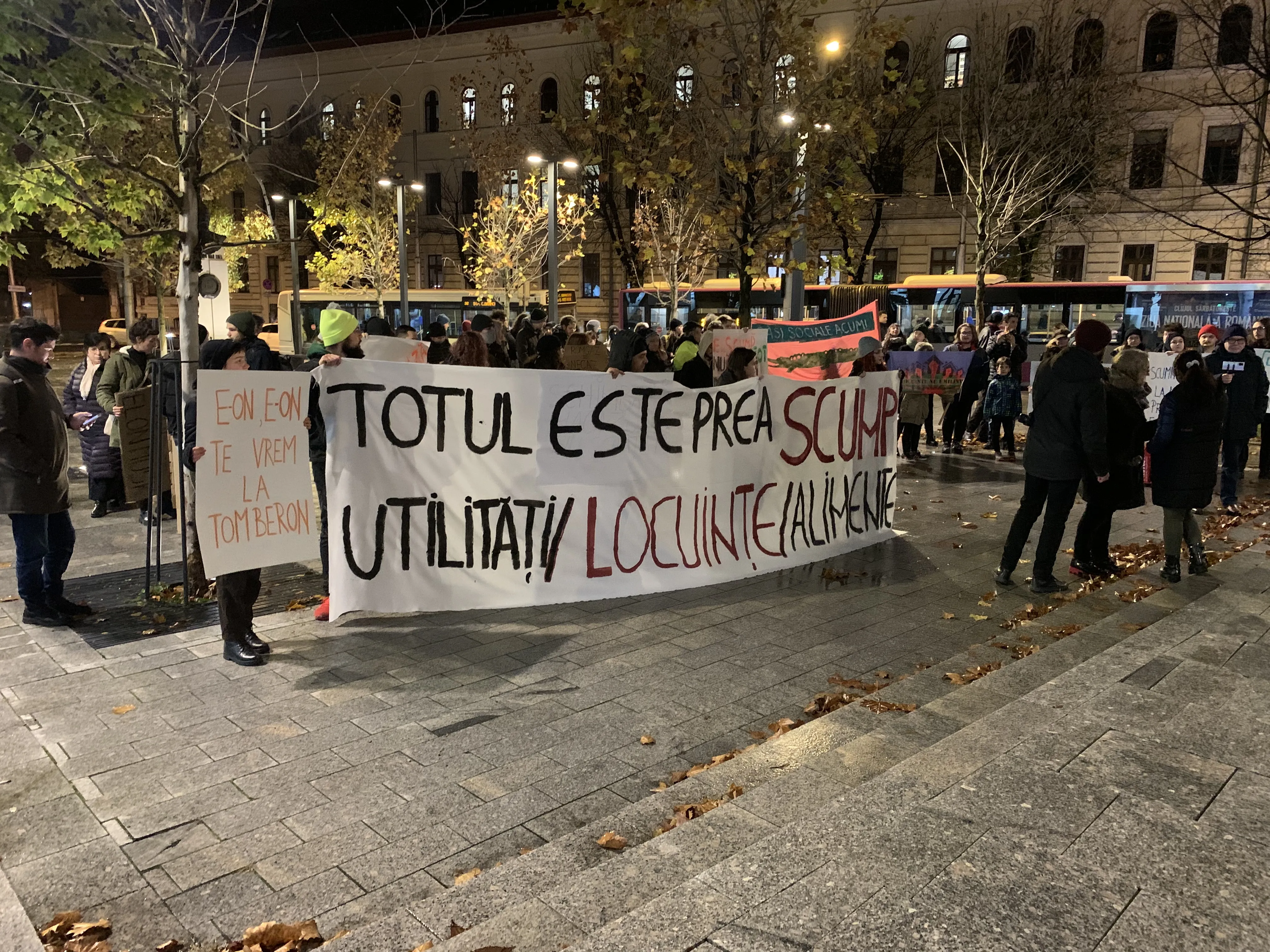 Clujenii au protestat joi seara, 24 Noiembrie, in fata Prefecturii Cluj, împotriva vieții tot mai scumpe din România și Cluj-Napoca.