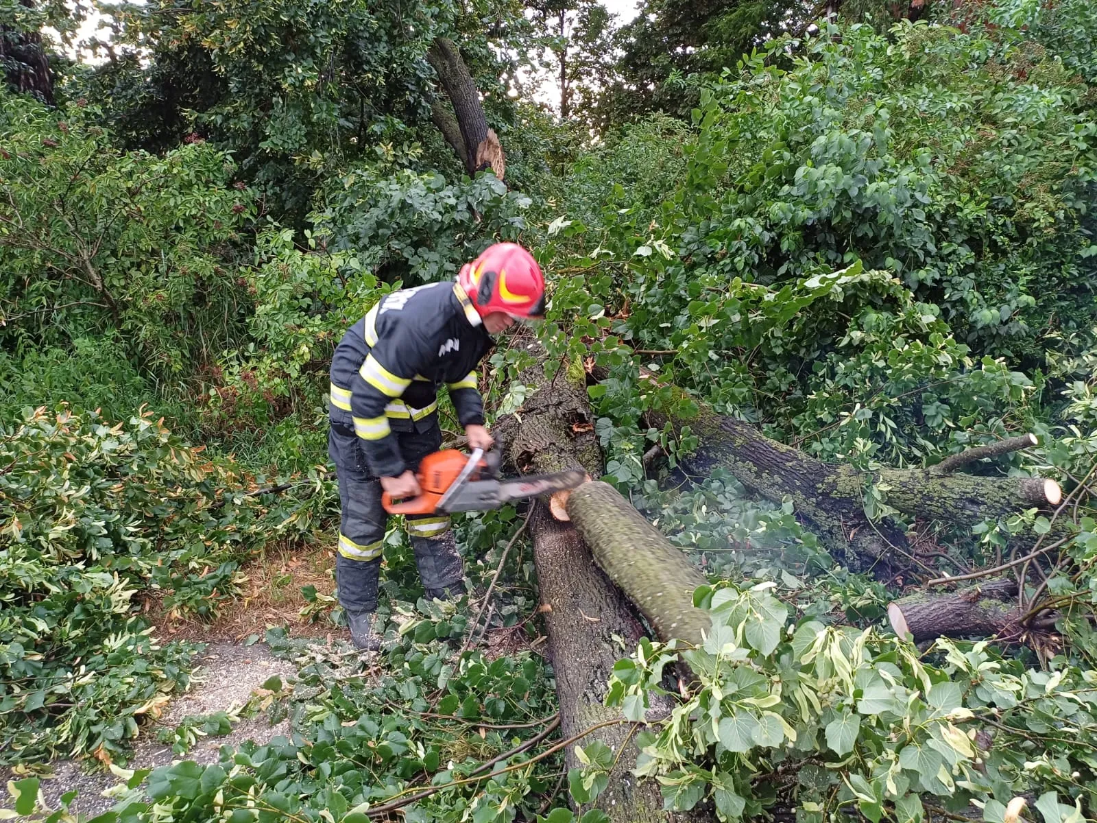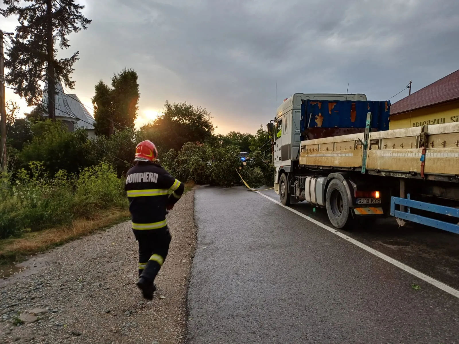 Morlaca: 5 arbori căzuți, a intervenit Detașamentul Huedin cu o autospecială.