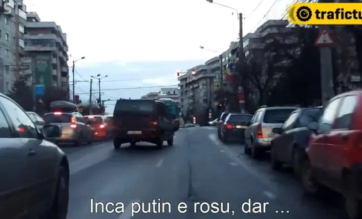 Șoferul se afla pe banda a treia și avea verde la semafor, așa că s-a decis să le dea ”clasă” celorlalți conducători auto. A trecut pe banda 1, care îi permitea să meargă numai la dreapta, și a demarat în trombă spre strada Moților, conform imaginile postate pe site -ul TraficTube.ro.