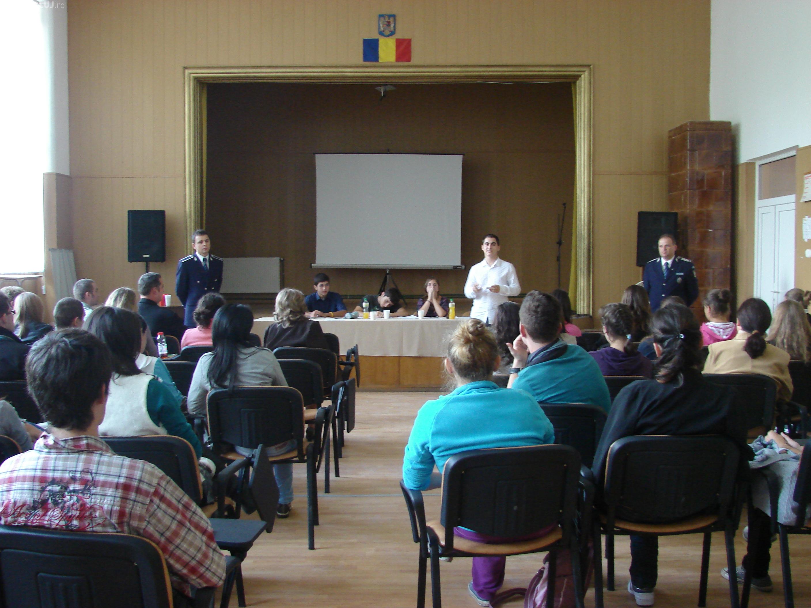 "La activitati au participat aproximativ 100 de elevi de la mai multe licee din municipiul Cluj – Napoca care au manifestat un interes sporit vis-a-vis de tema prezentata, adresand intrebari reprezentantilor politiei cu privire la prevederile legale in domeniul delincventei juvenile", se arata intr-un comunicat al Inspectoratului de Politie al Judetul Cluj.