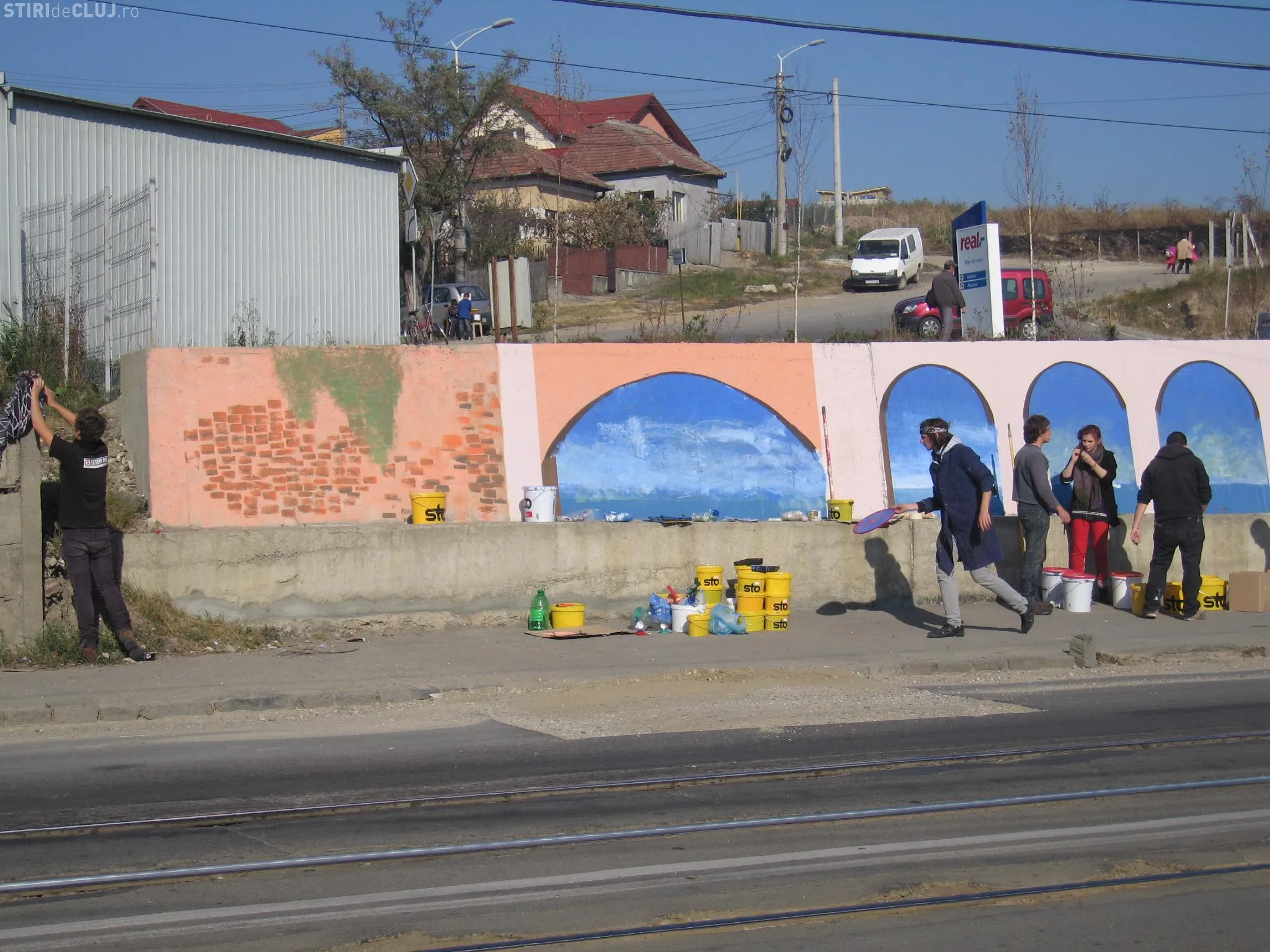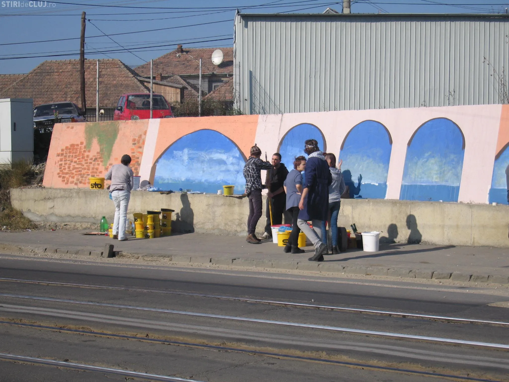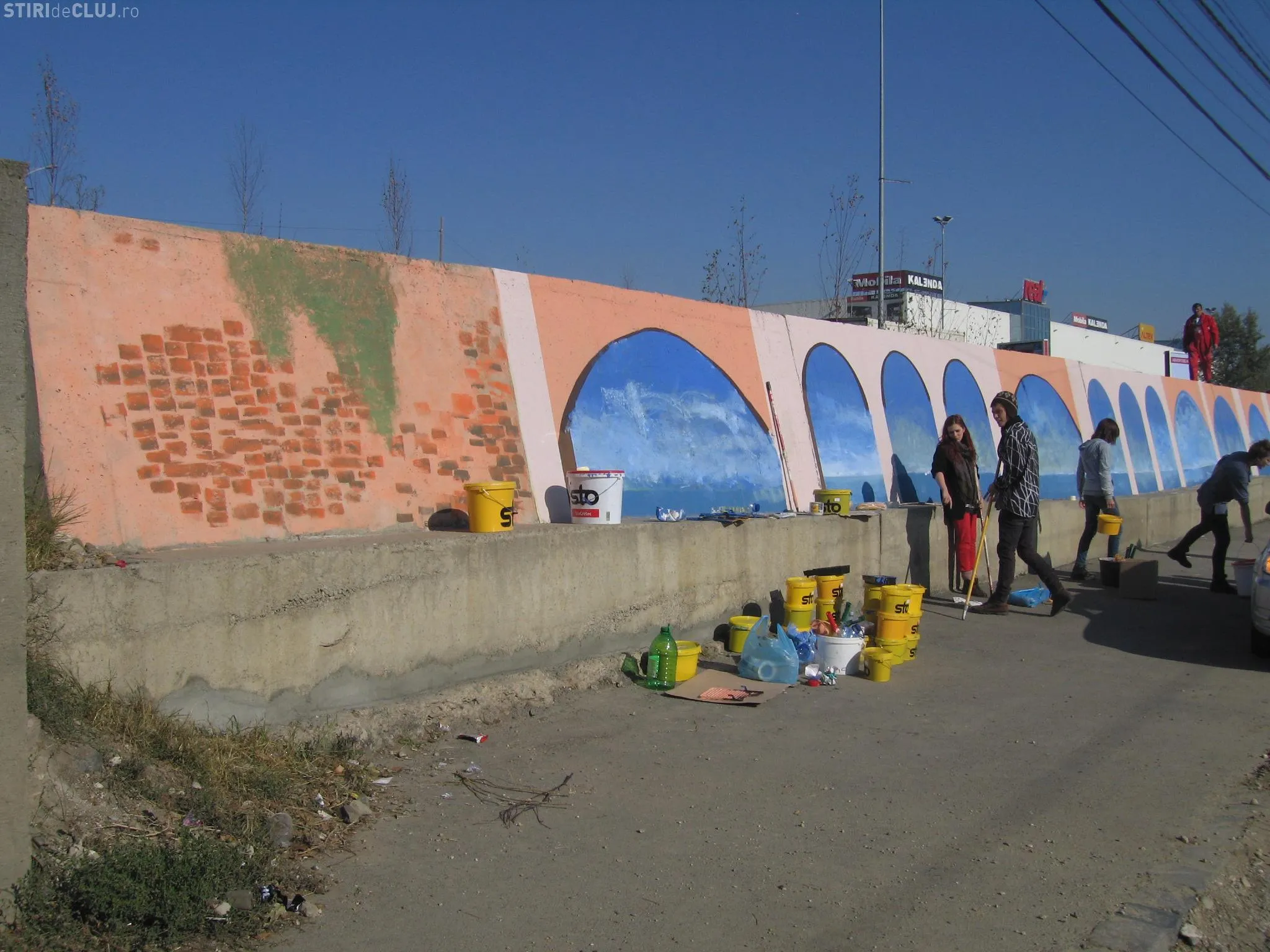 Elevii de la Liceul de Arta din Cluj au pictat peretii de pe Bulevardul Muncii FOTO