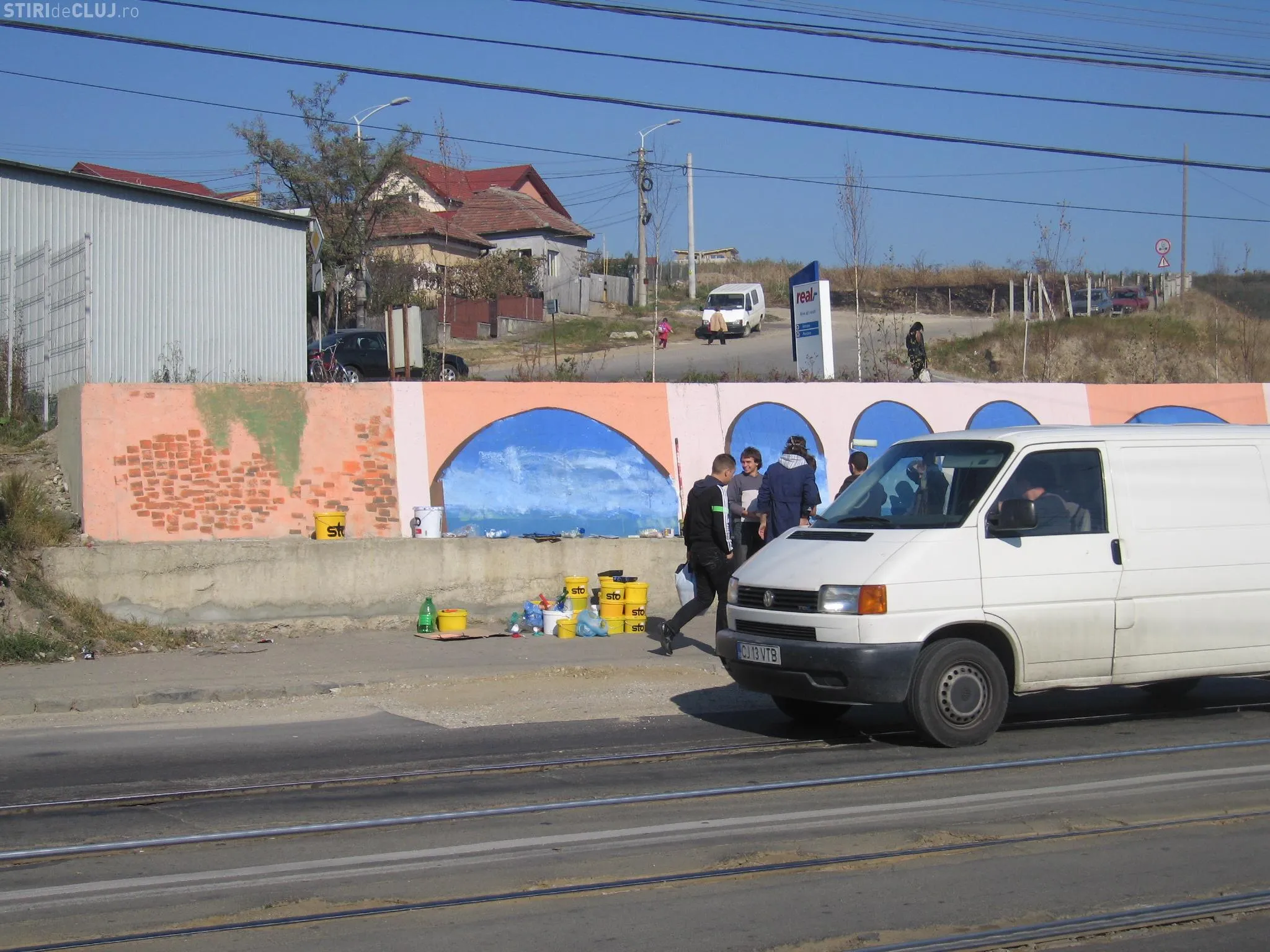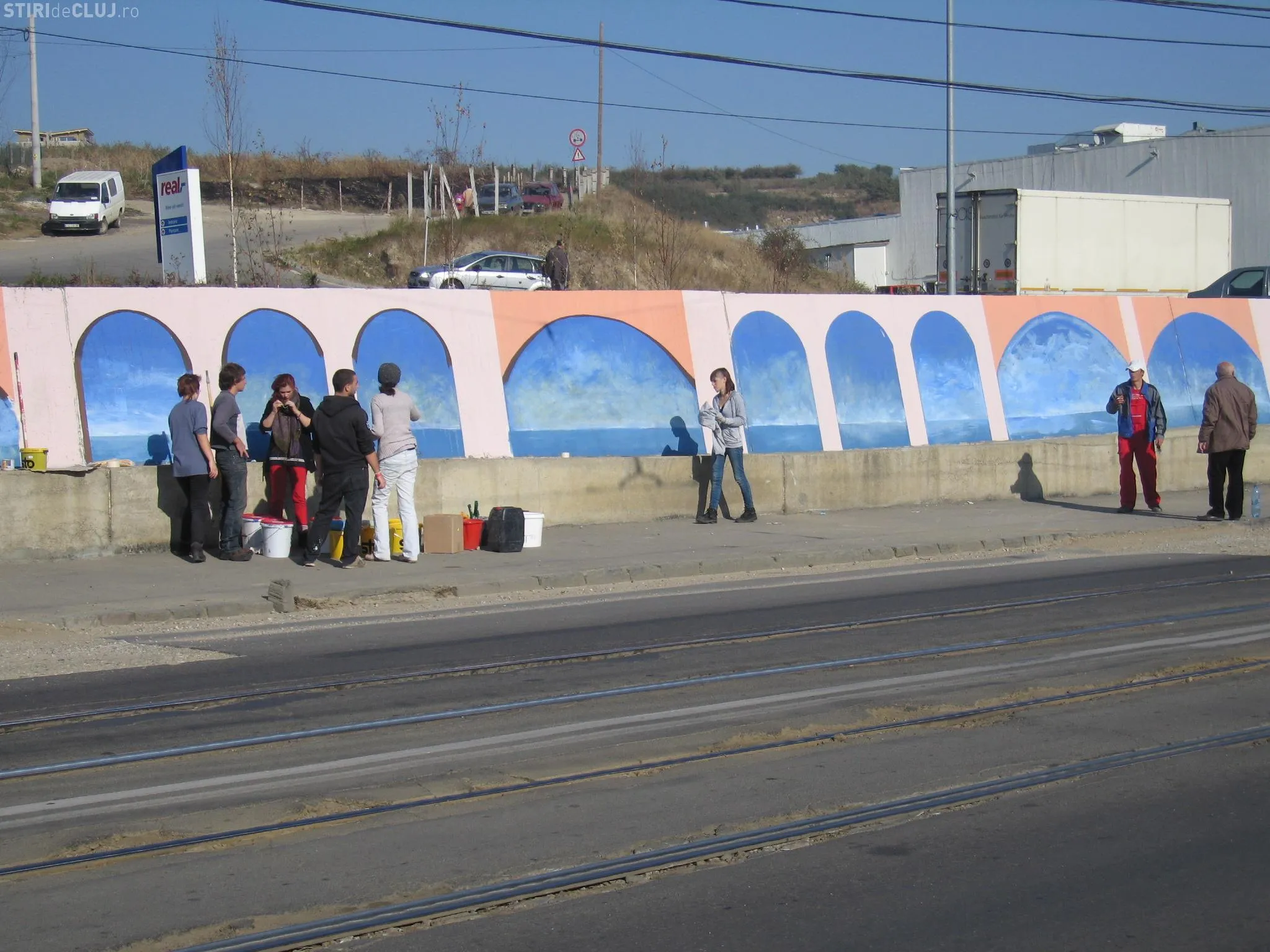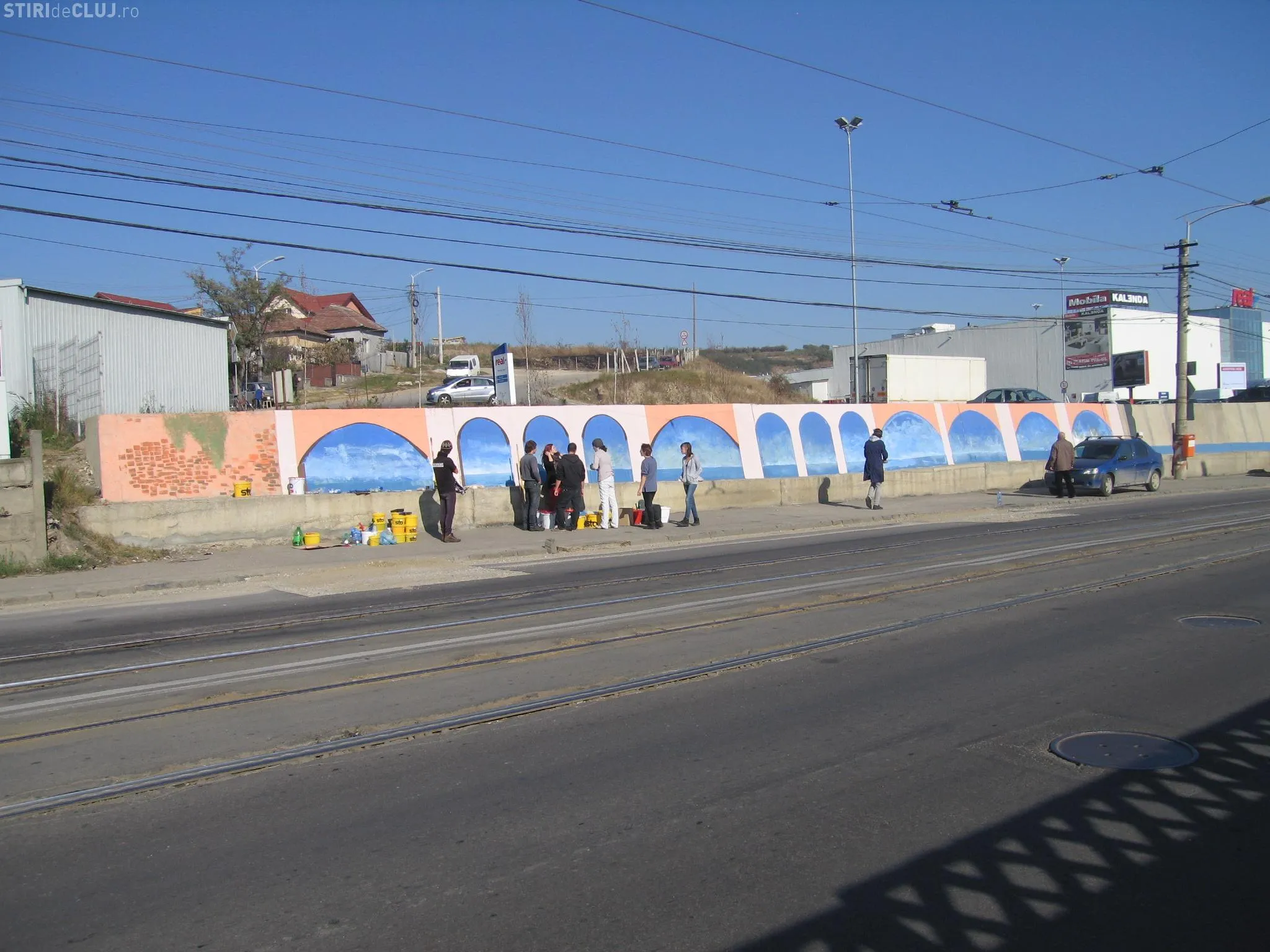 Elevii de la Liceul de Arta din Cluj au pictat peretii de pe Bulevardul Muncii FOTO