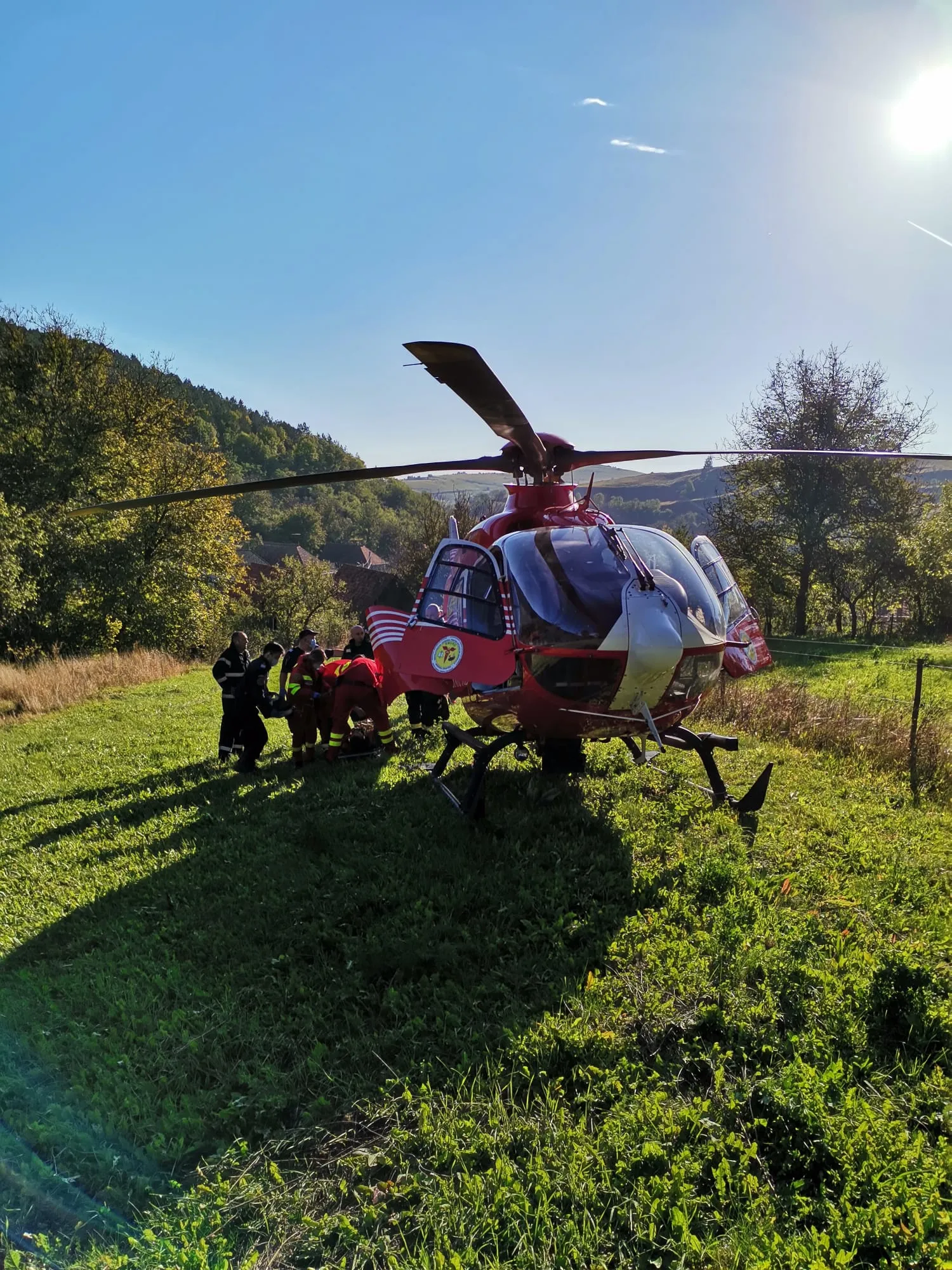 Cei doi bărbați au fost transportați cu elicopterul și cu ambulanța SMURD la spital pentru îngrijiri și investigații de specialitate.