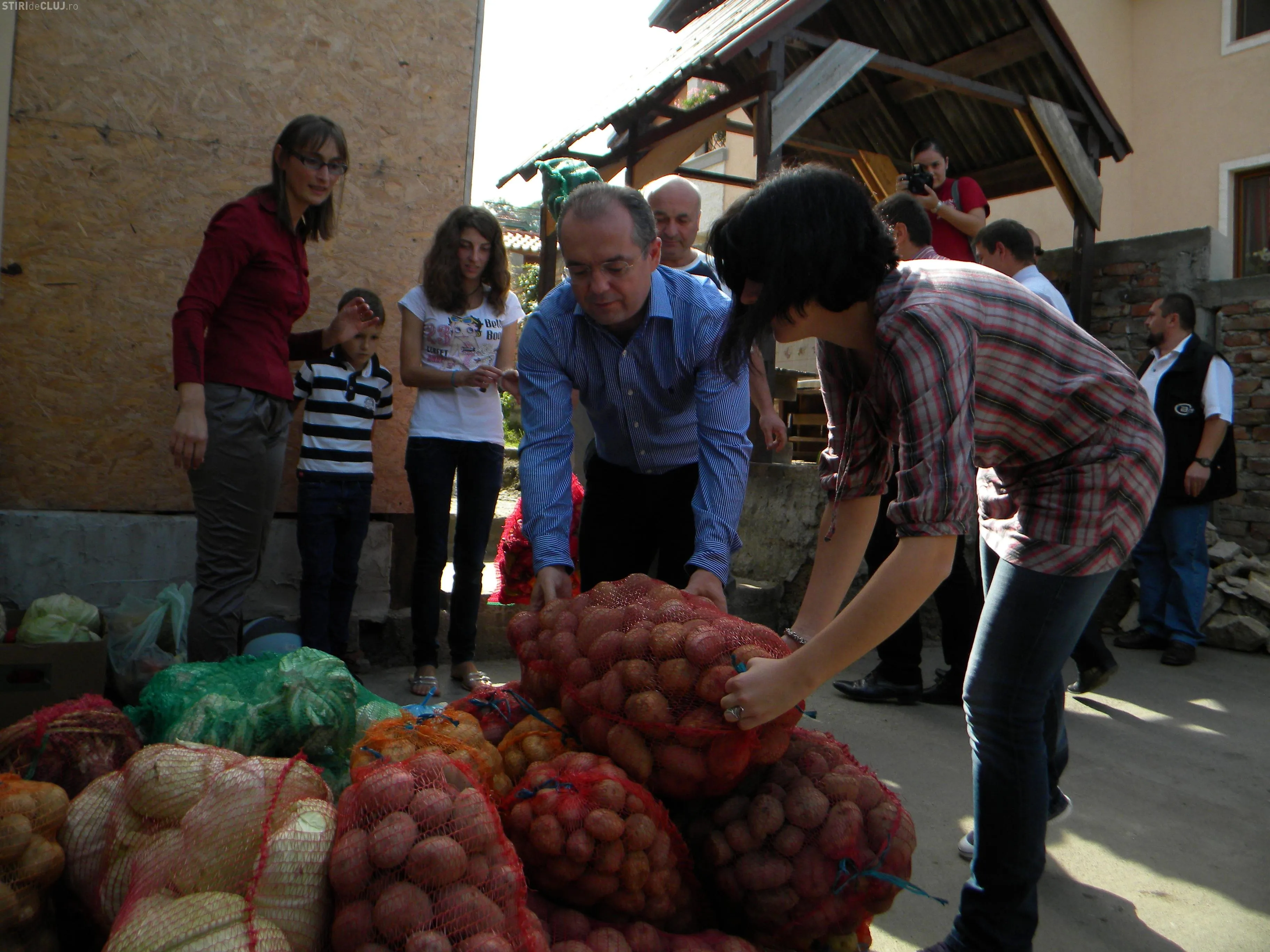 Emil Boc a cărat saci cu legume la o casă de tip familial. Producătorii de la Ziua Recoltei au donat 2 tone VIDEO și FOTO