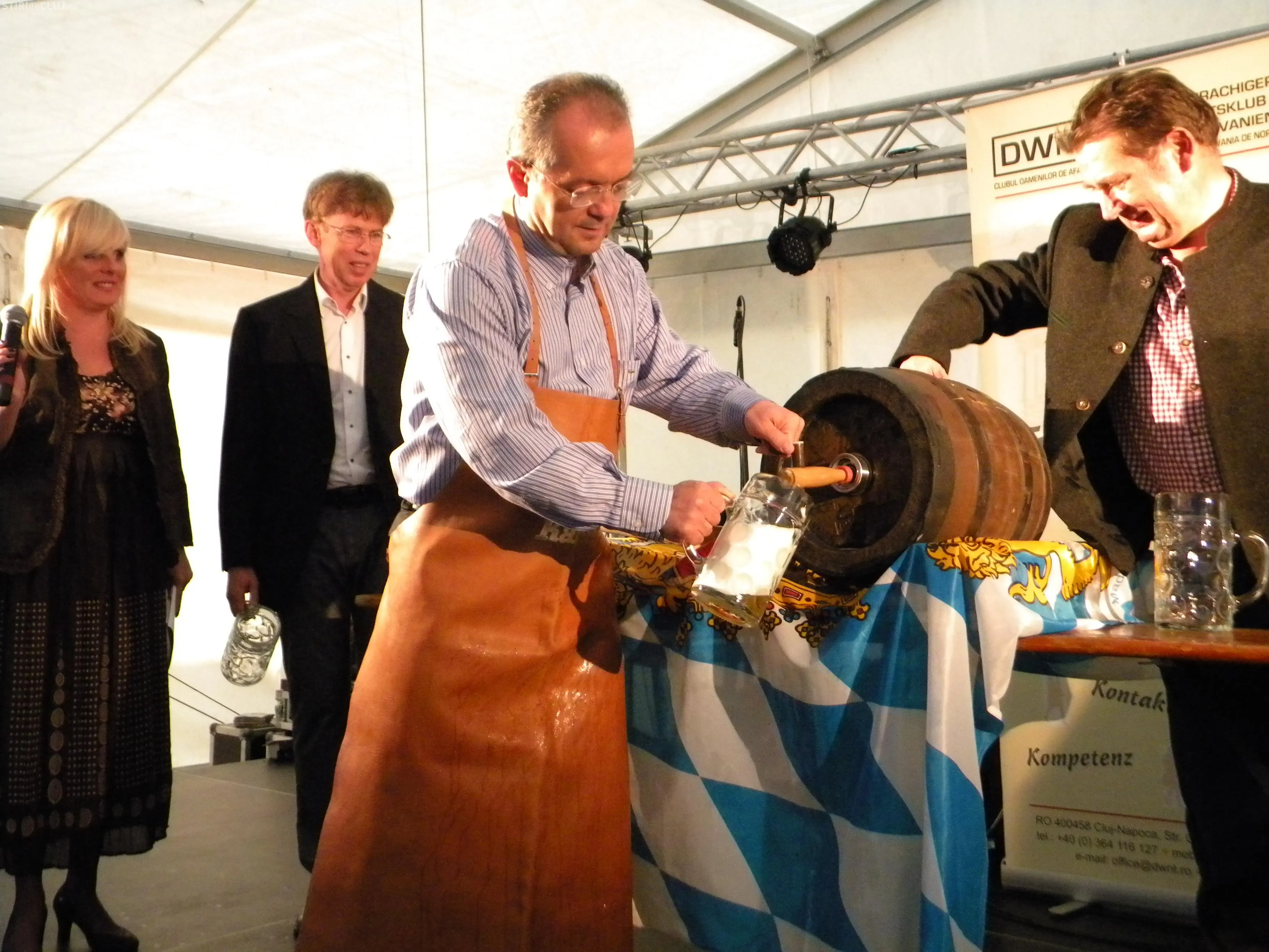 După ce dirijat o orchestră nemțească acum câțiva ani, vineri seara, în Piața Unirii Emil Boc a dat cep unui butoi de bere germană, cu ocazia deschiderii unui festival din țara lui Beethoven.