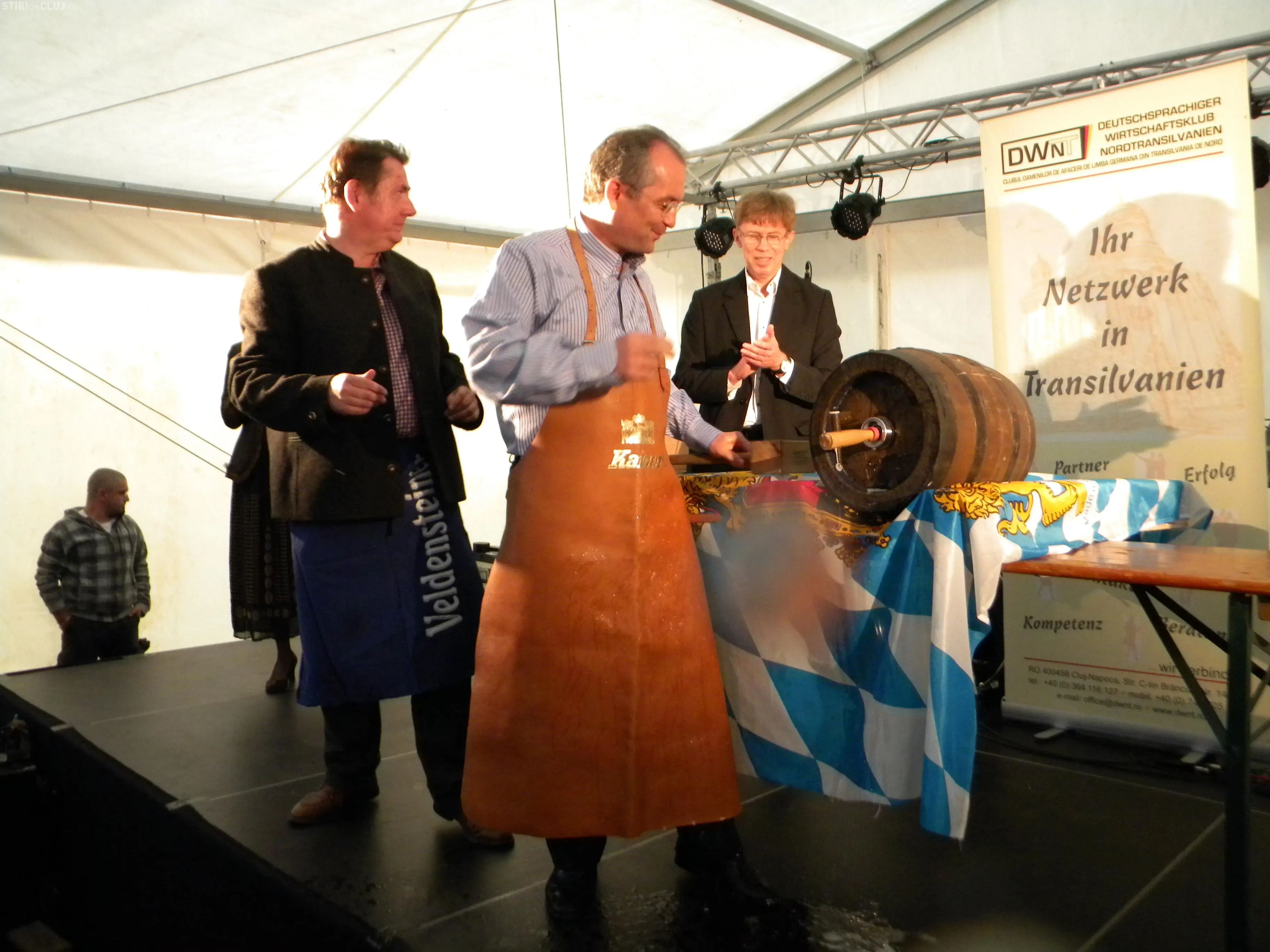 ”E o plăcere să deschizi un butoi cu bere germană. Să știți că e gustoasă. Am gustat-o primul pentru că a ajuns pe mine prima dată, dar e plăcută, e bună, e spumoasă și întrebam câte trebuie să bei ca să începi să vorbești germana. Eu nu cred că foarte multe după cum văd că e de bună. Le urez tuturor clujenilor să se simtă bine în aceste zile. Să se bucure de ceea ce le oferă acest festival german pe care îl avem în centrul orașului. E o tradiție frumoasă. Trebuie să demonstrăm că știm și să muncim și să ne distrăm. Așa cum o fac nemții de fiecare dată în luna octombrie”, a declarat voios Emil Boc.