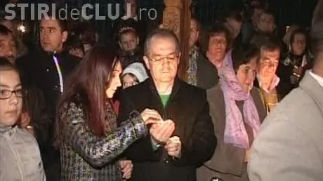 Premierul a ajuns la biserica din satul natal Rachitele cu putin inainte de miezul noptii, alaturi de sotie. Emil Boc a aprins o lumanare si a inconjurat biserica alaturi de ceilalti credinciosi.