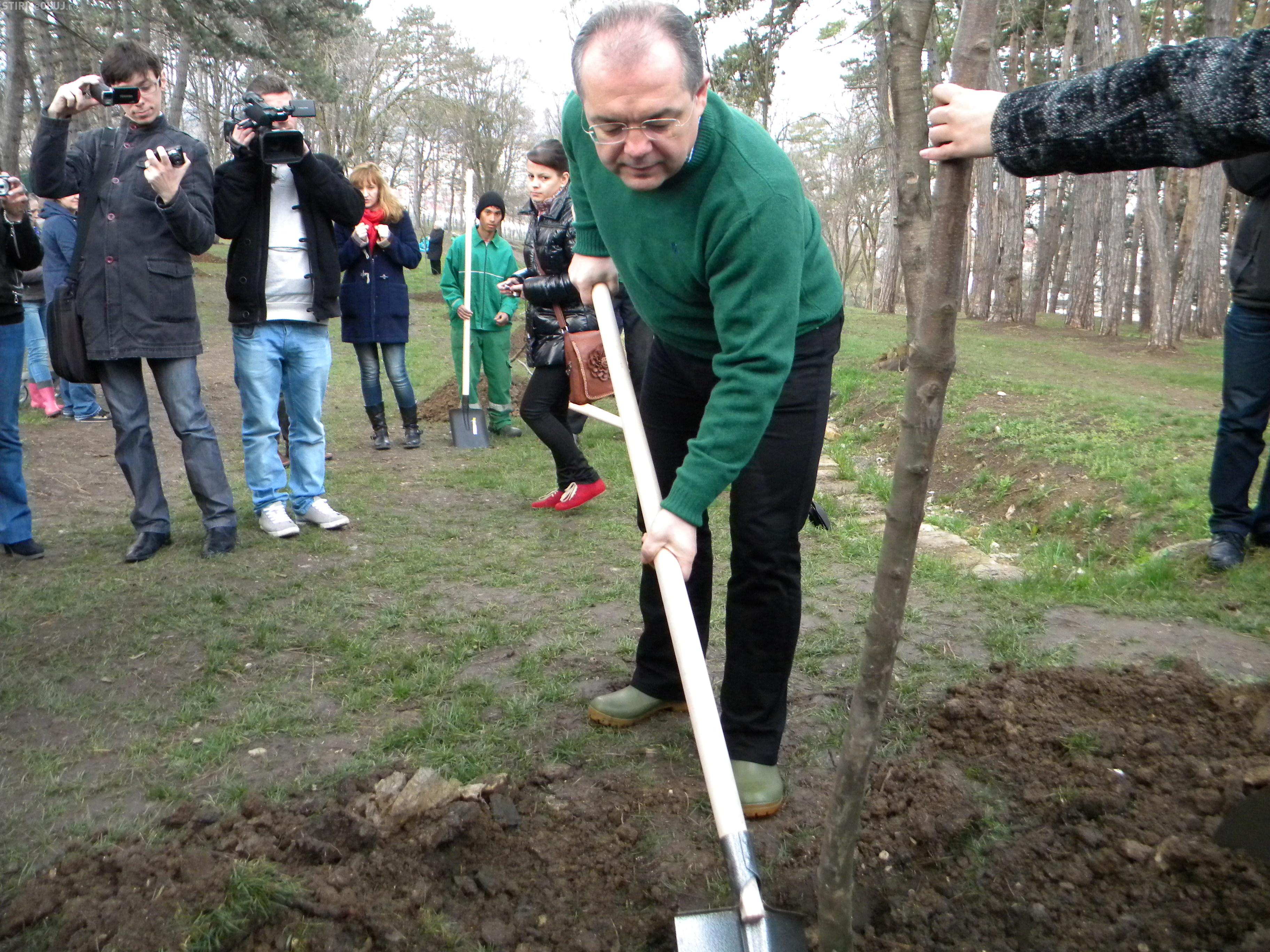 Primarul Emil Boc a plantat mai mulți copaci în parcul Iuliu Prodan, din cartierul Zorilor, de pe strada Gheorghe Dima, în cadrul proiectului ”Un bebe, un arbore!”.