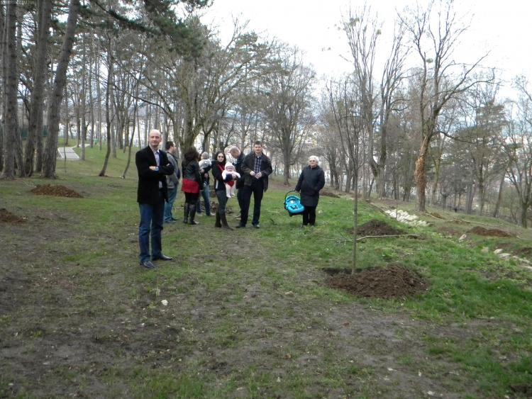 Alături de Emil Boc în parcul din cartierul Zorilor au fost mai mulți părinți și bebelușii acestora, care au plantat copacii cărora le-au dat numele celor mici.