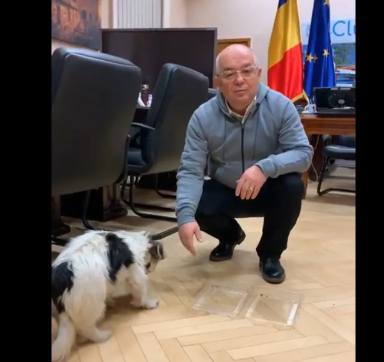 Emil Boc a oprit mașina când a văzut câinele, iar tot traficul s-a blocat. Cineva i-a adus câinele și l-a dus la biroul de la Primărie.