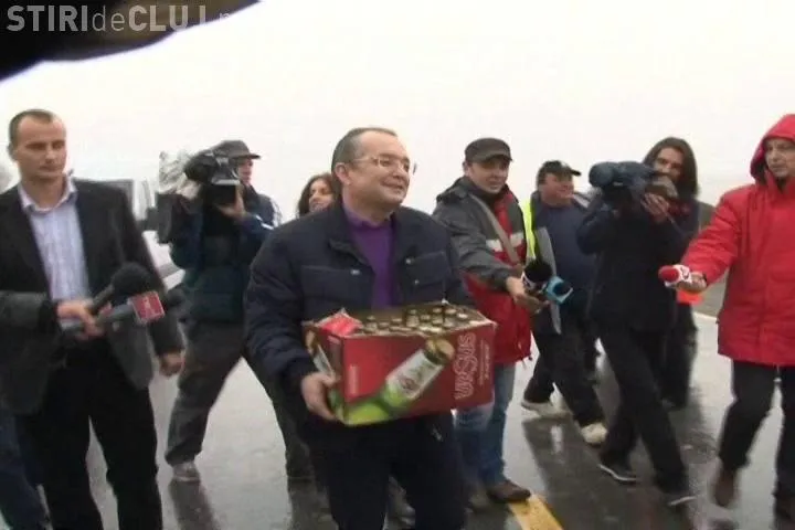 Emil Boc i-a cinstit cu bere pe muncitorii de la centura Valcele - Apahida - VIDEO