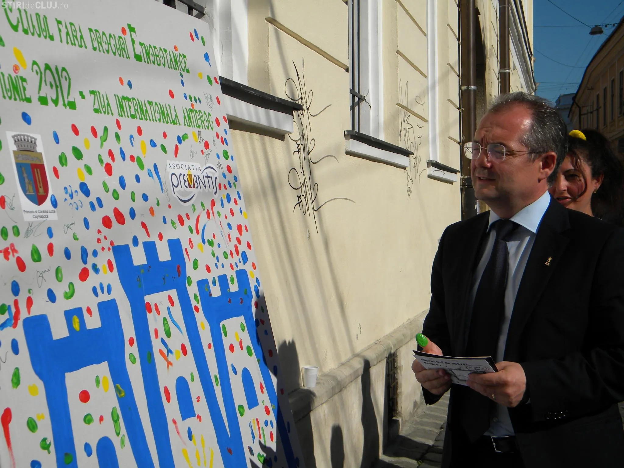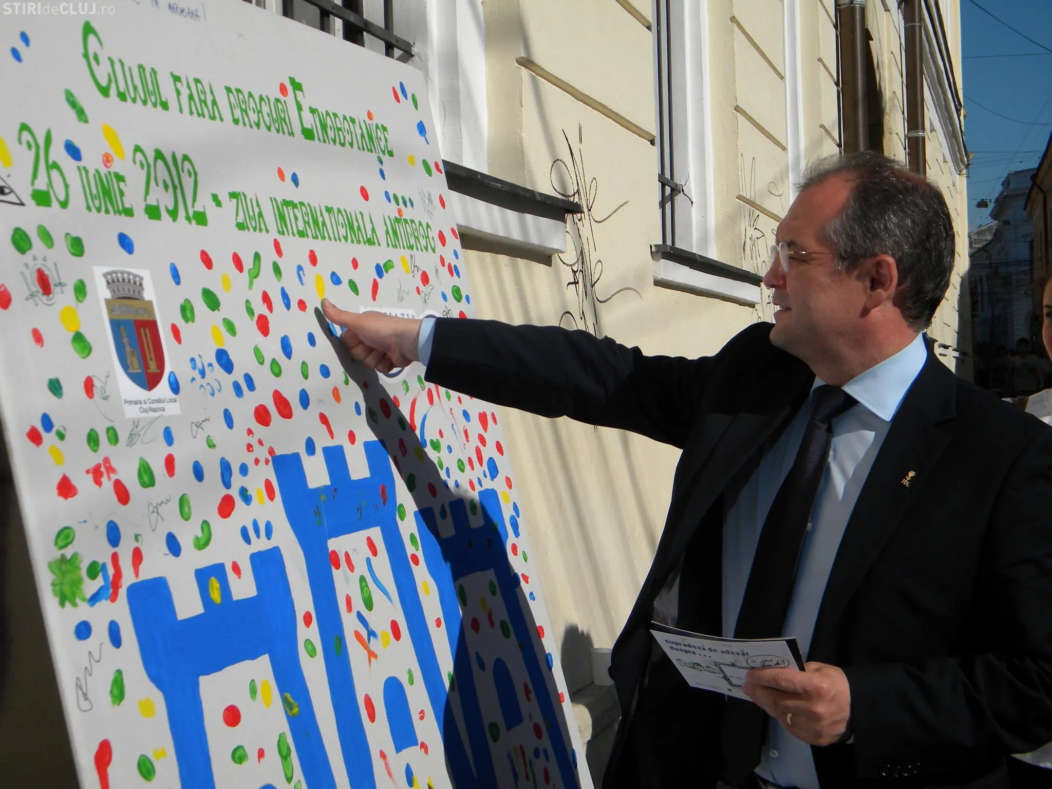 Primarul Clujului Emil Boc a vizitat marţi standul antidrog din Piaţa Muzeului, în semn de susţinere a proiectului.