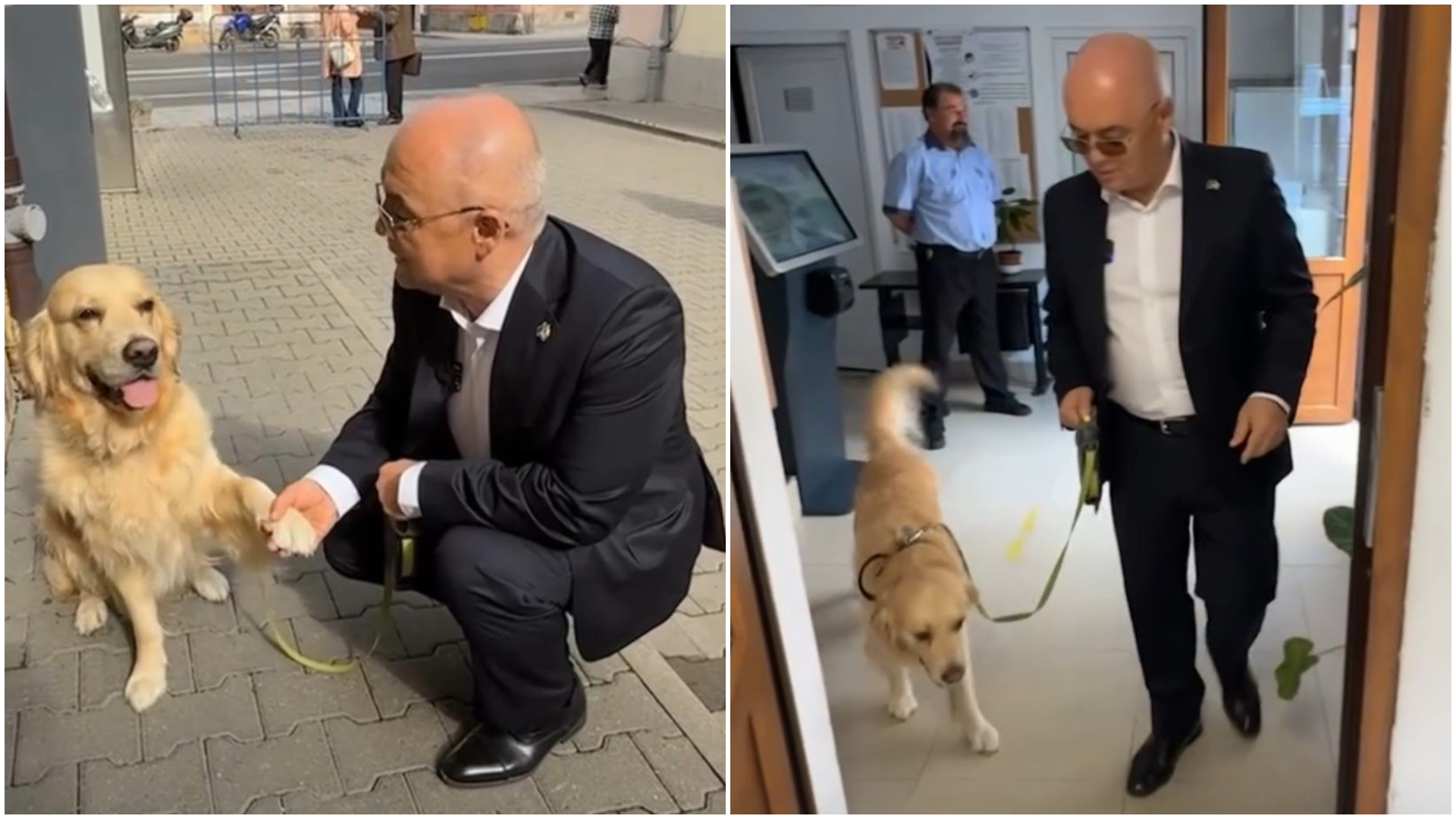 Emil Boc și cățelul său, la inaugurare: Primăria Cluj-Napoca își deschide oficial porțile și pentru animalele de companie! VIDEO