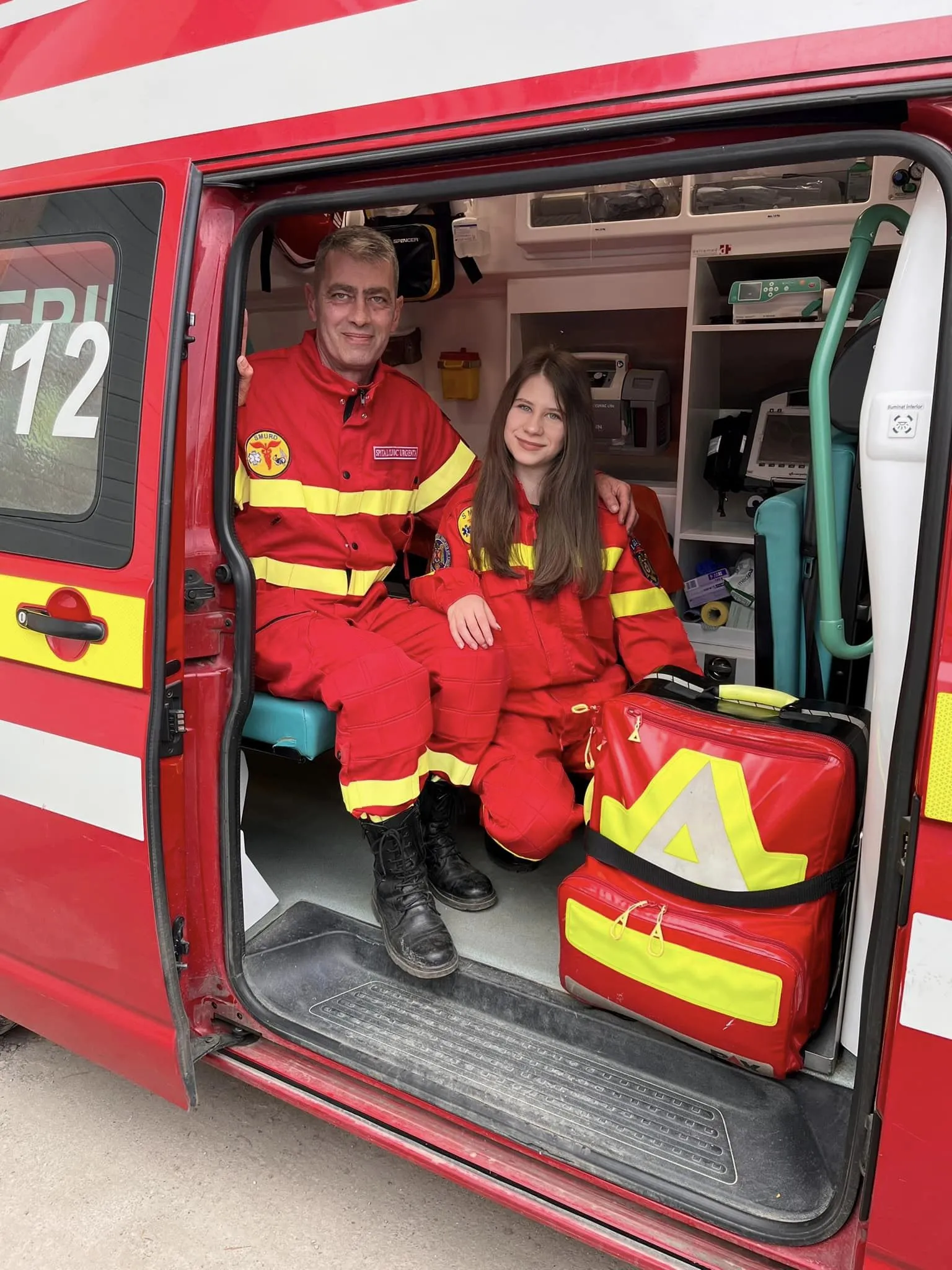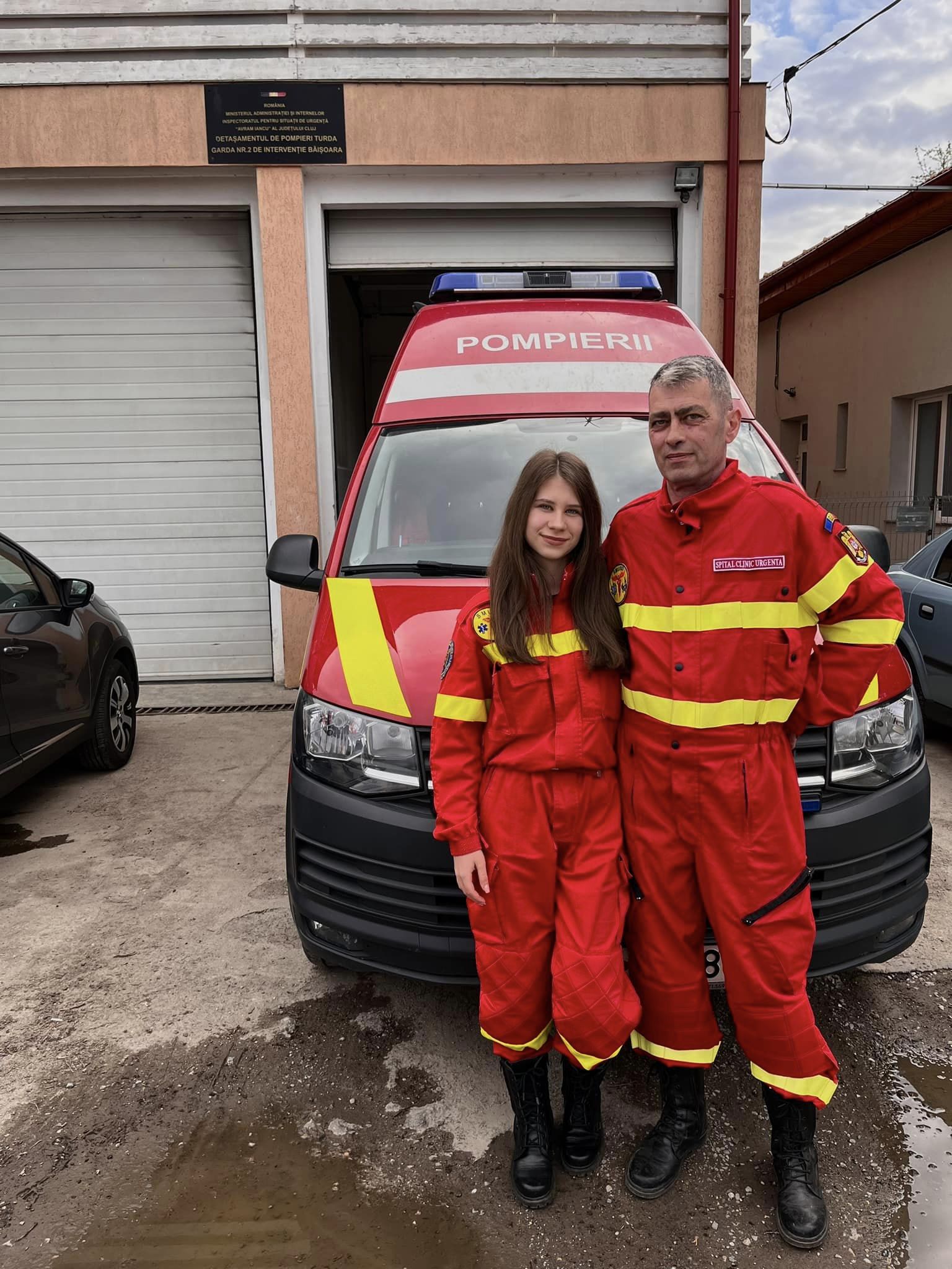 ”Colegul nostru de la Detașamentul Turda, plutonier adjutant șef Udrea Ovidiu, și-a iubit atât de mult meseria, încât i-a transmis pasiunea și fiicei sale. Drept urmare, Neptina a urmat cursurile programului Salvator din Pasiune și a devenit voluntar pe ambulanțele SMURD.