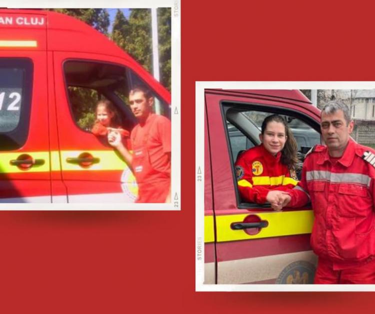 Ovidiu Udrea, plutonier adjutant șef la SMURD Turda, s-a retras la pensie, moment care a coincis cu intrarea în activitate a fiicei sale, Neptina. Colegii plutonierului au postat o fotografie din tinerețe, în care acesta apărea alături de fiica lui, în mașina SMURD.