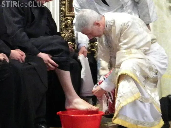 Episcopul greco-catolic de Cluj-Gherla, Florentin Crihălmeanu, a continuat tradiția spălării picioarelor în joia mare.