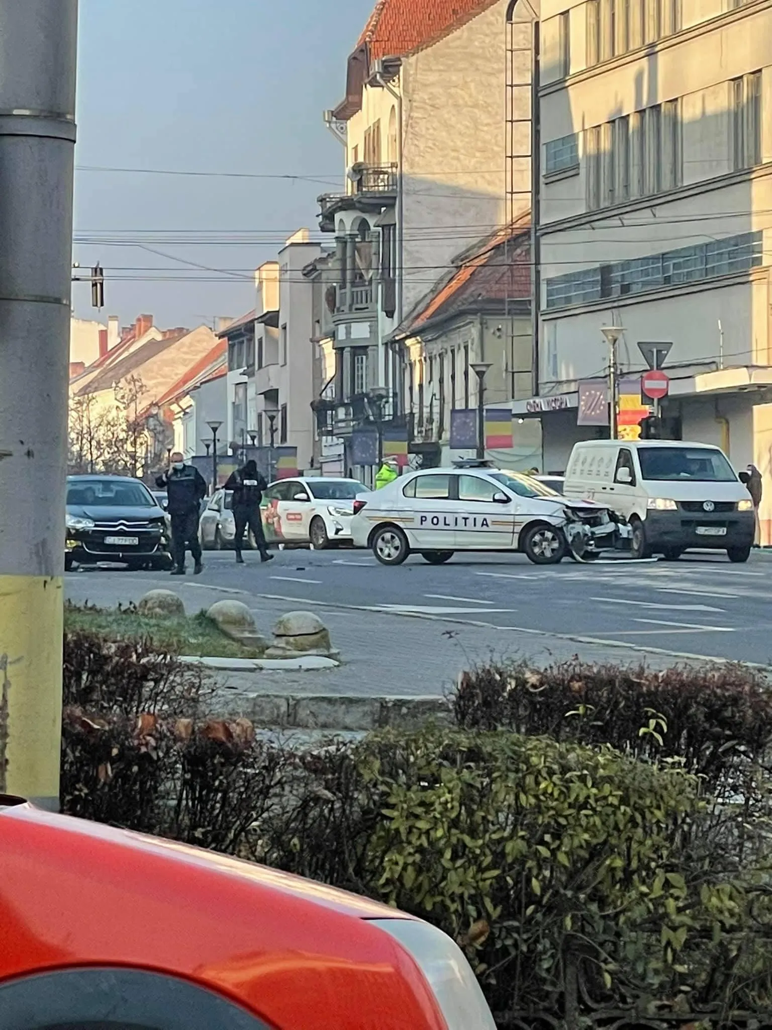 SOCIAL Cluj: O mașină de poliție a fost implicată într-un accident rutier în Piața Avram Iancu
