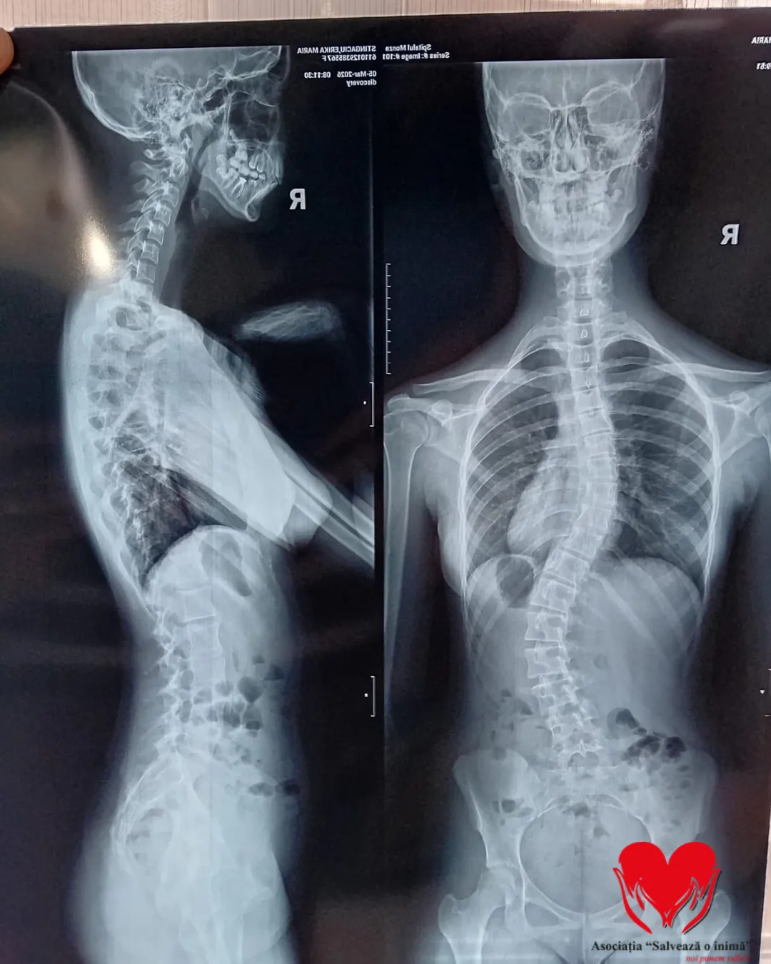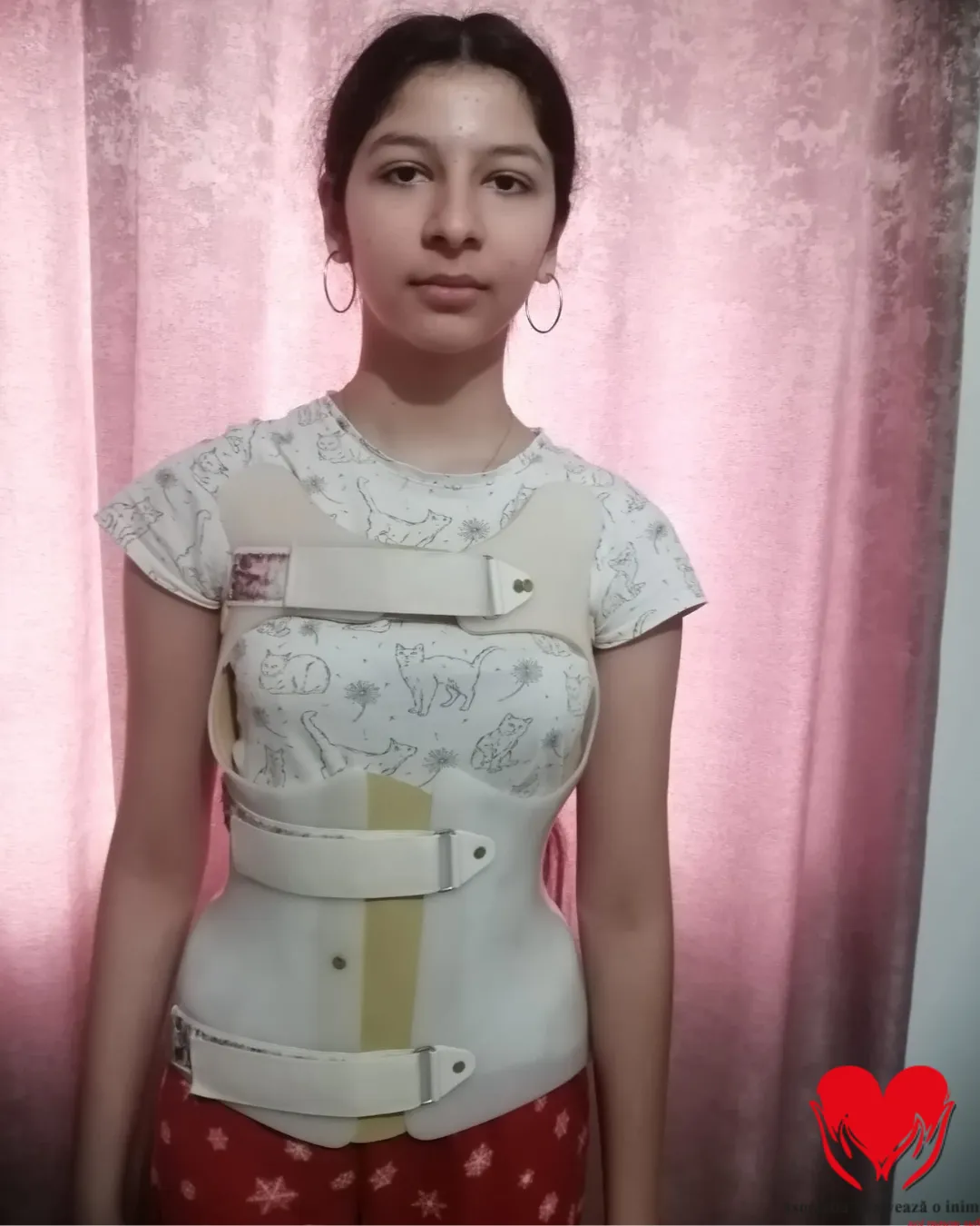 Viața Erikai s-a schimbat brusc după un control medical de rutină, moment în care a fost descoperită asimetria umerilor și, ulterior, diagnosticată cu scolioză idiopatică lombară. De atunci, fiecare zi a devenit o luptă continuă: ședințe de kinetoterapie, purtarea corsetului aproape permanent, vizite la specialiști și investigații care au încercat să încetinească evoluția bolii. În ciuda eforturilor depuse, deformarea coloanei continuă să progreseze, iar singura speranță reală rămâne intervenția chirurgicală.