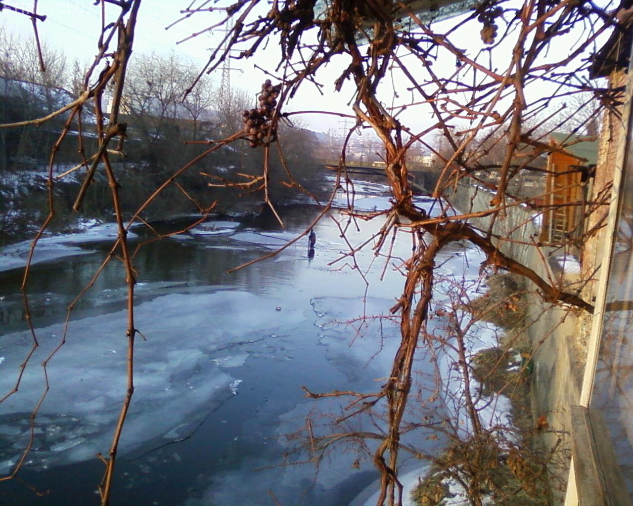 ”Doi oameni care incercau sa rupa podul de gheata format pe Somes intre podul de la Flip si cel din Piata Abator. Mentionez ca afara erau -7 grade, iar unul din ei era intrat cu picioarele complet in apa. Celalalt era pe margine si incerca cu o sfoara si o ancora la capatul opus, sa rupa gheata in doua. Au reusit intr-un final sa porneasca in aval bucata aceea mare de gheata. Felicitari celor doi ca au indurat frigul de afara si din apa pentru a face un lucru de apreciat.