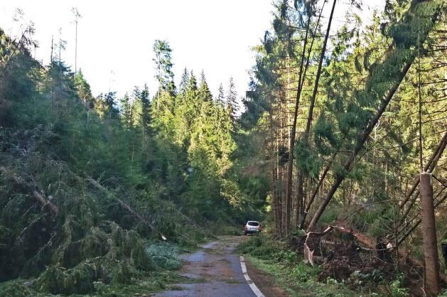 ”În judetul Cluj ( ca si in alte locuri in tara) la MAGURI RACATAU furtuna a rupt multi copaci care a blocat drumul. Au fost blocati si adusi la disperare multi turisti. Pentru că solicitarile de interventie erau foarte mari peste tot, nu avea cine să ii deblocheze, politistii de acolo, fara sa le ceara nimeni, au facut rost de drujbe si au deblocat drumul.