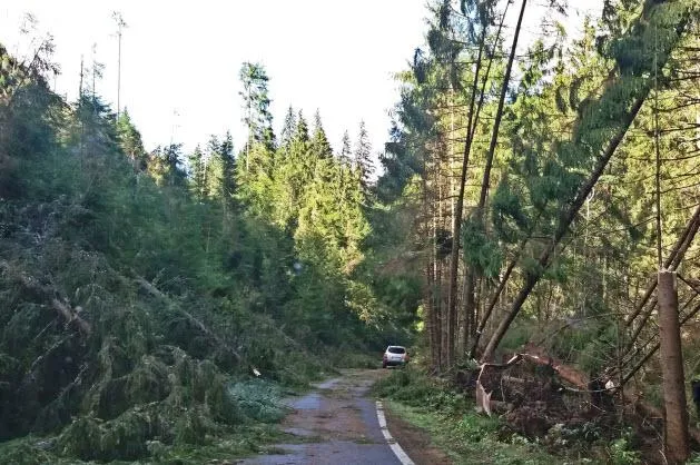 Polițiștii din Măguri Răcătău au intervenit fără a sta pe gânduri pentru a salva un grup de turiști de pe un drum județean blocat din cauza arborilor spulberați de vânt.