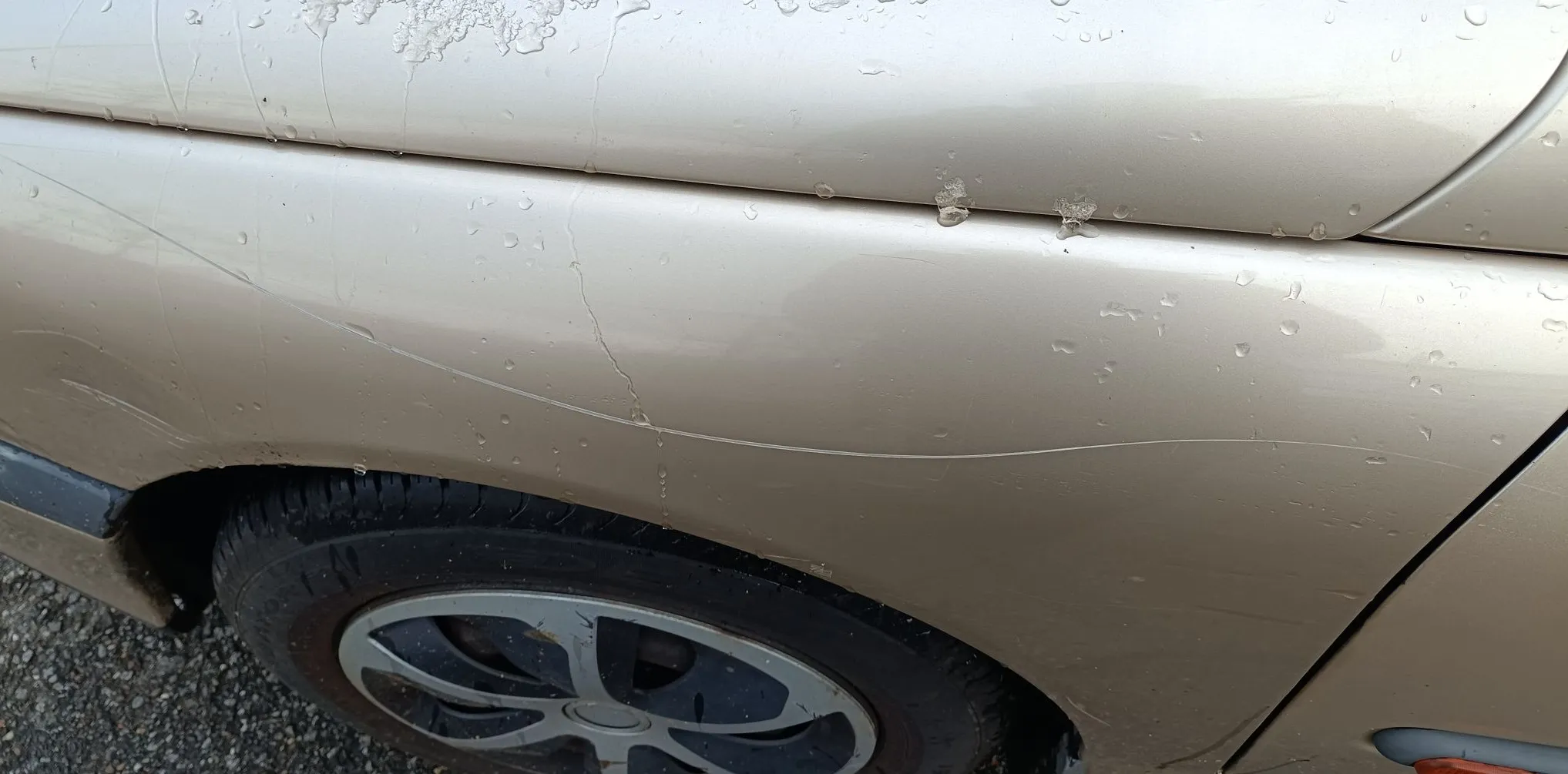 Deoarece se aștepta la răspunsuri cu o tentă amuzantă, acesta a anunțat din start că zgârietura: ,,nu iese la polish... am încercat. Deci, din spate până în față (aripa spate, ambele uși, aripa față).”