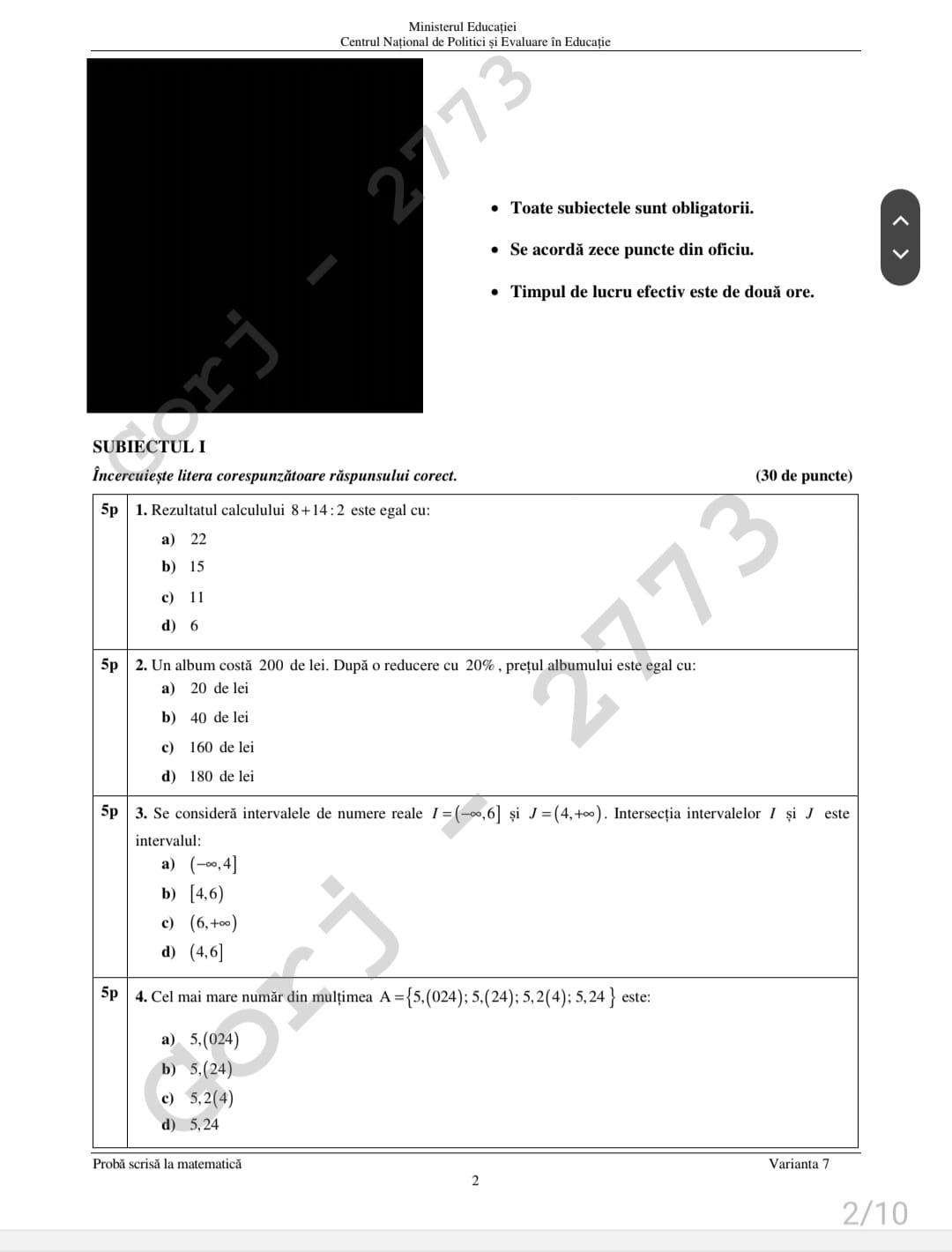 Ministerul Educației anunță că subiectele și baremul de corectare vor fi disponibile pe site-ul subiecte.edu.ro, în fiecare zi cu probă scrisă, începând cu ora 15:00.