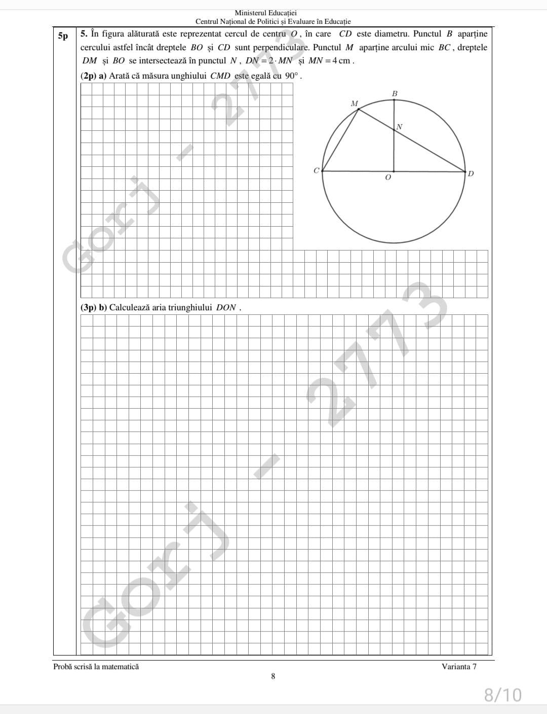 Examenul la matematică de la Evaluare Naţională clasa a VIII-a este structurat în trei subiecte, fiecare valorând 30 de puncte. Vor fi acordate 10 puncte din oficiu, iar subiectele sunt alcătuite în conformitate cu programa aprobată de Ministerul Educației.