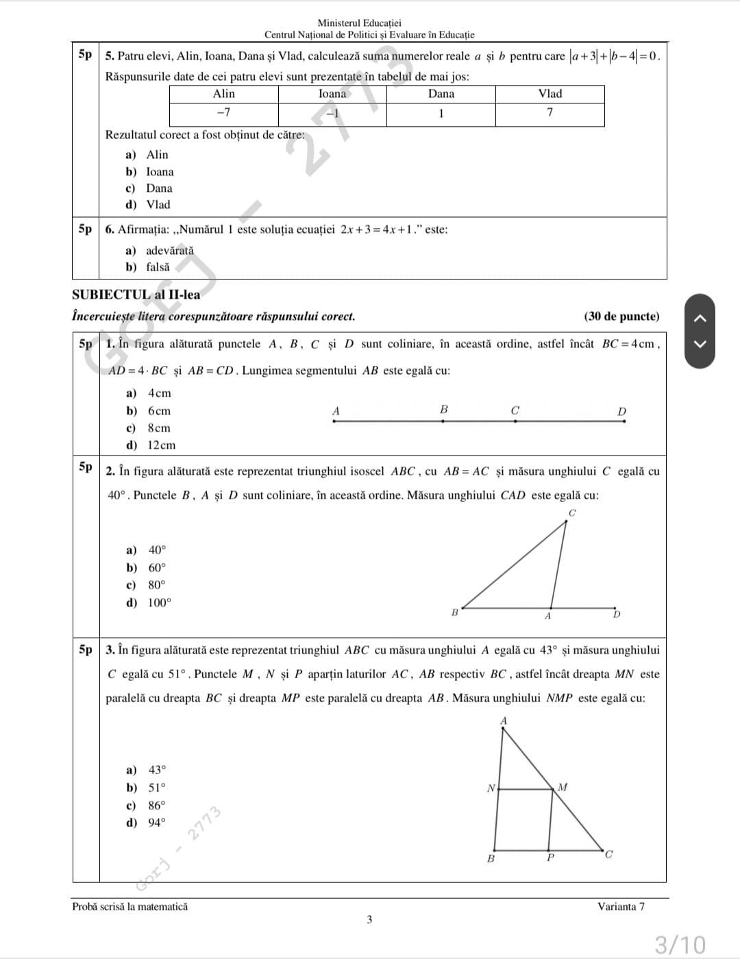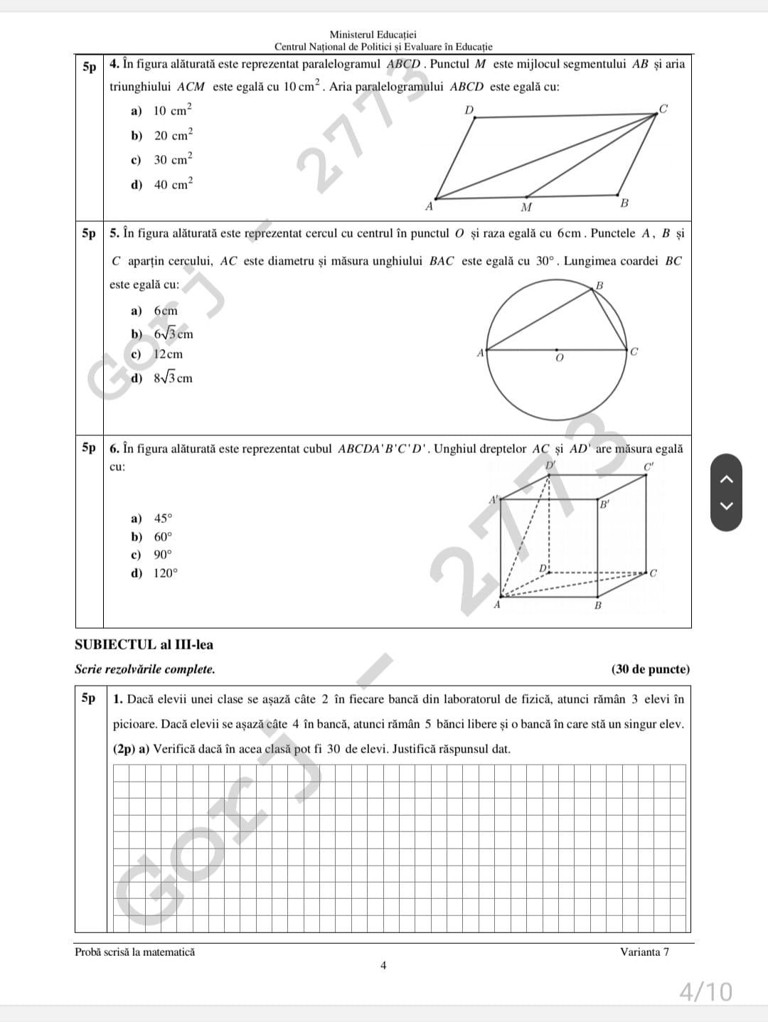 Evaluarea Națională 2024: Ce subiecte au primit elevii la Matematică