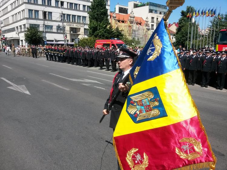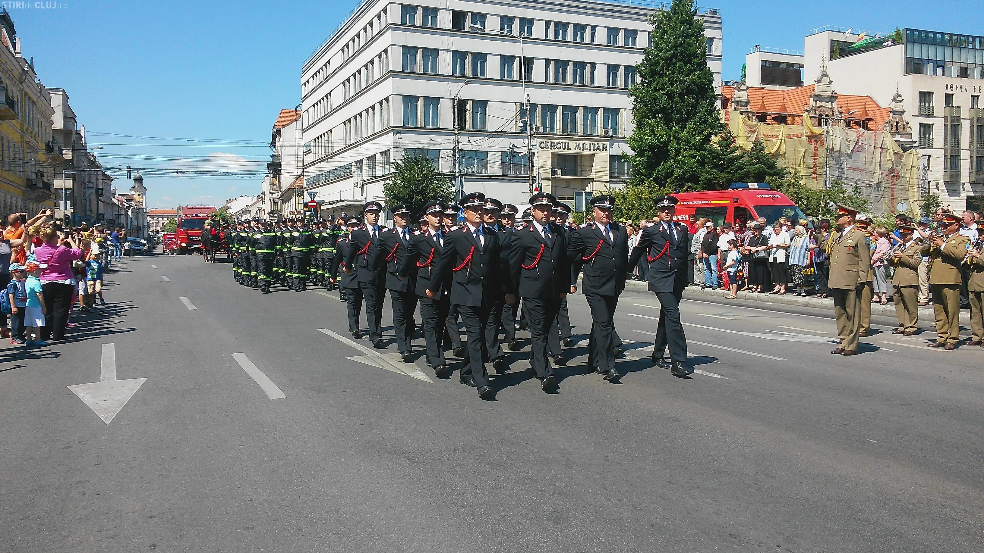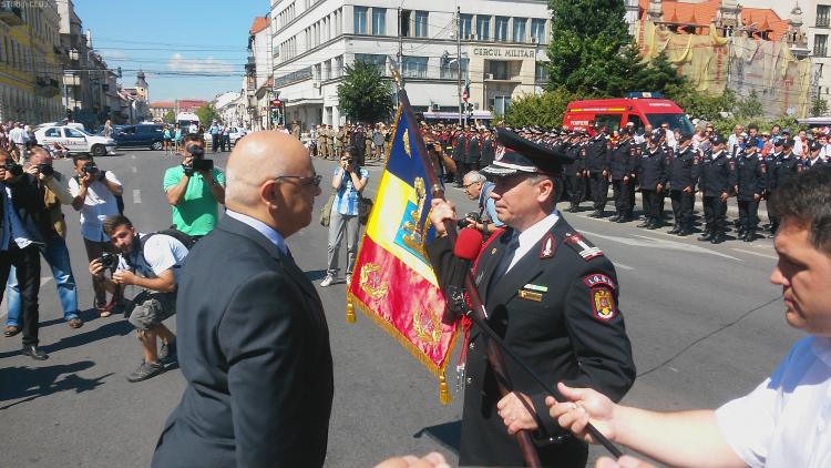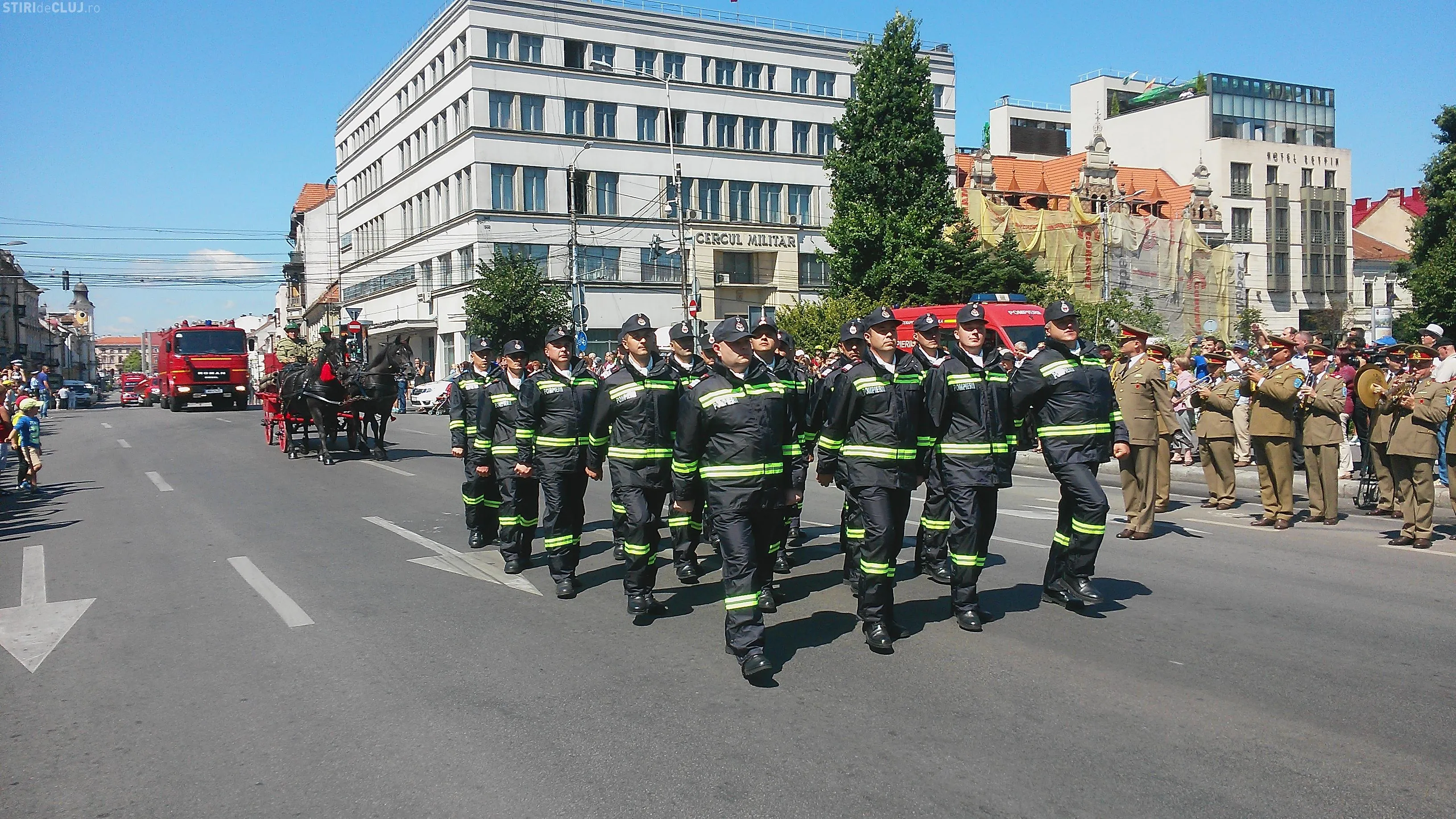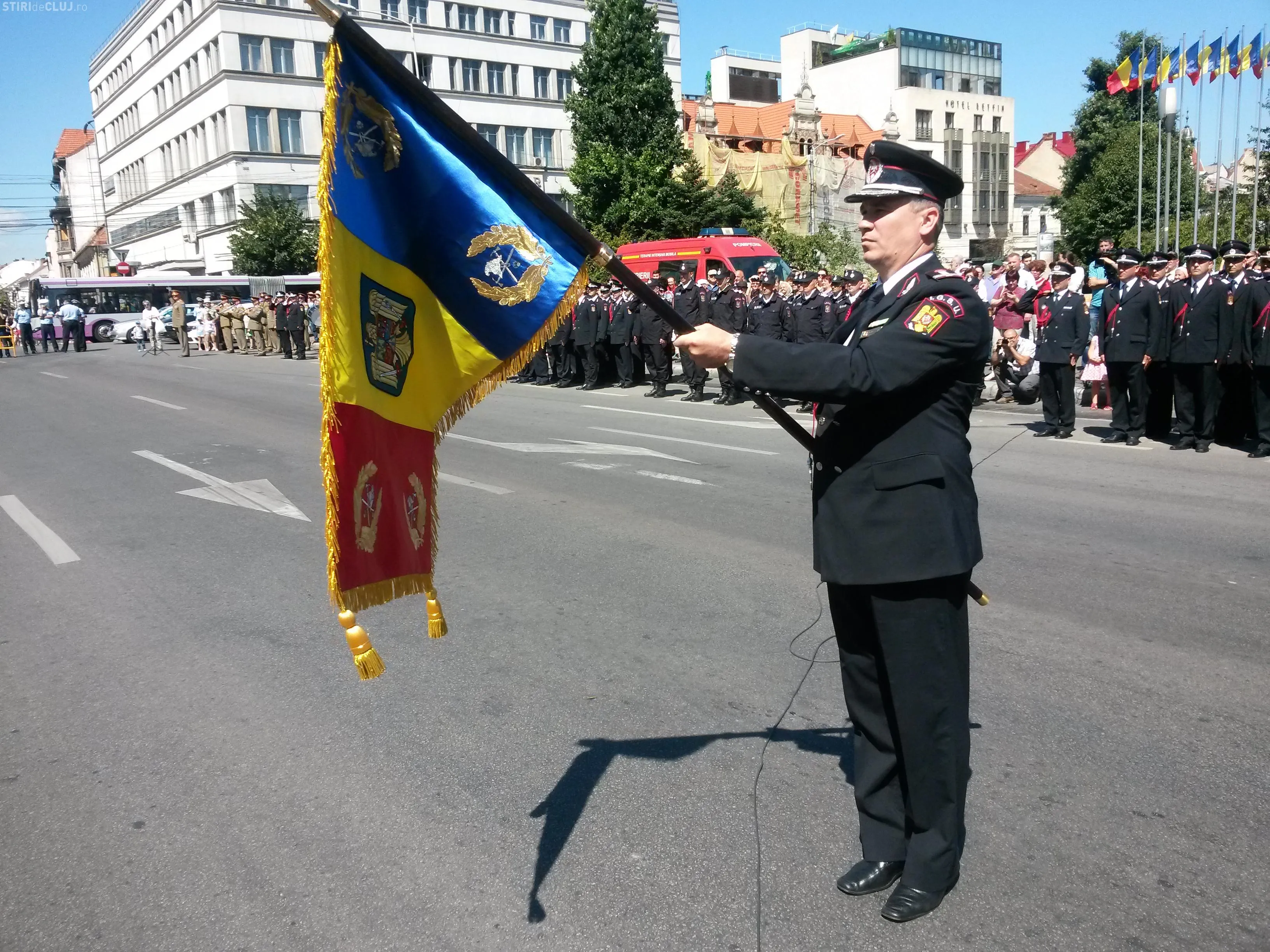 Pompierii clujeni au sărbătorit vineri, 8 iulie, în Piața Avram Iancu primirea drapelului de lupta al ISU Cluj si 80 de ani de atestare documentară a pompierilor în Cluj.