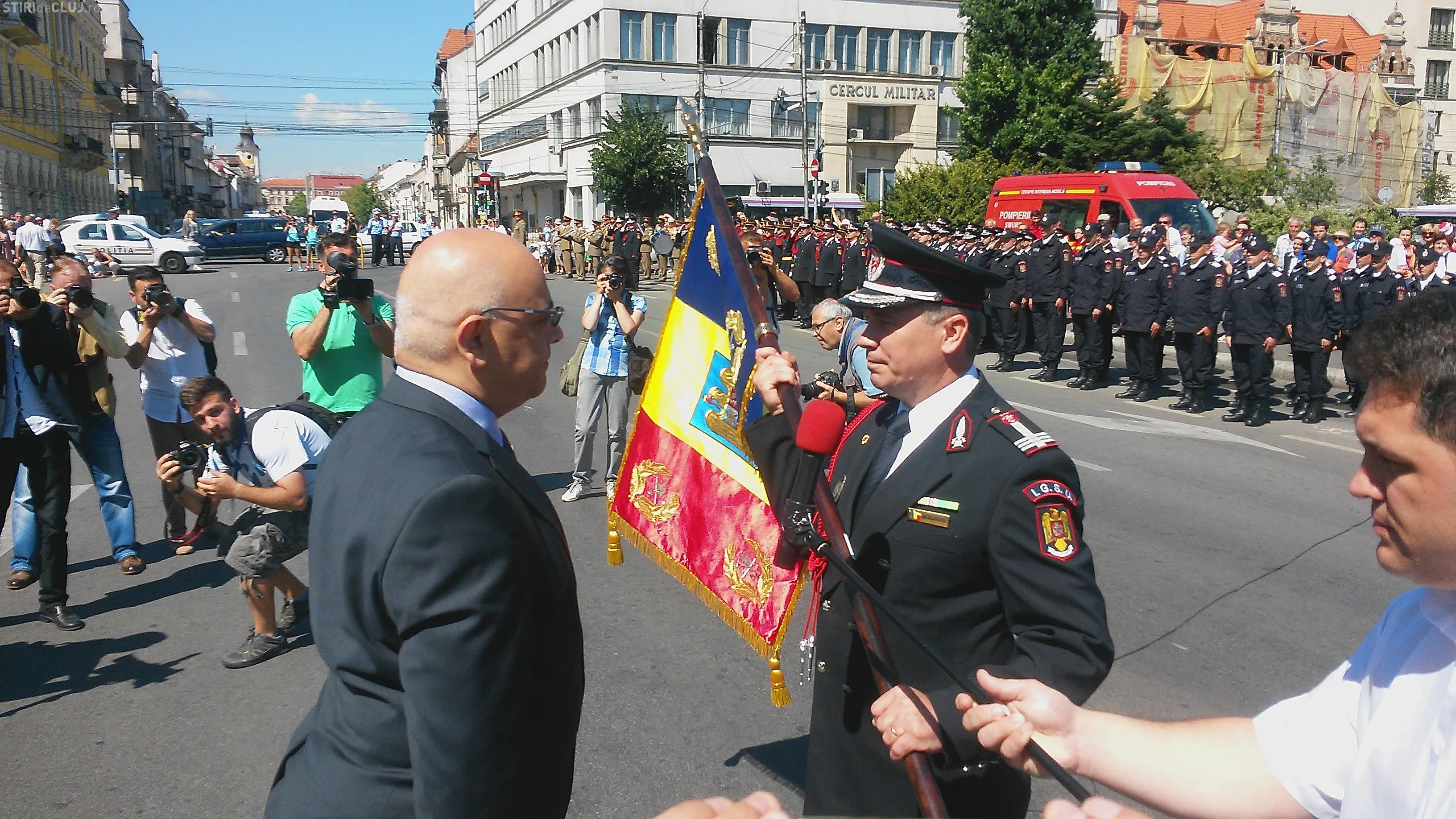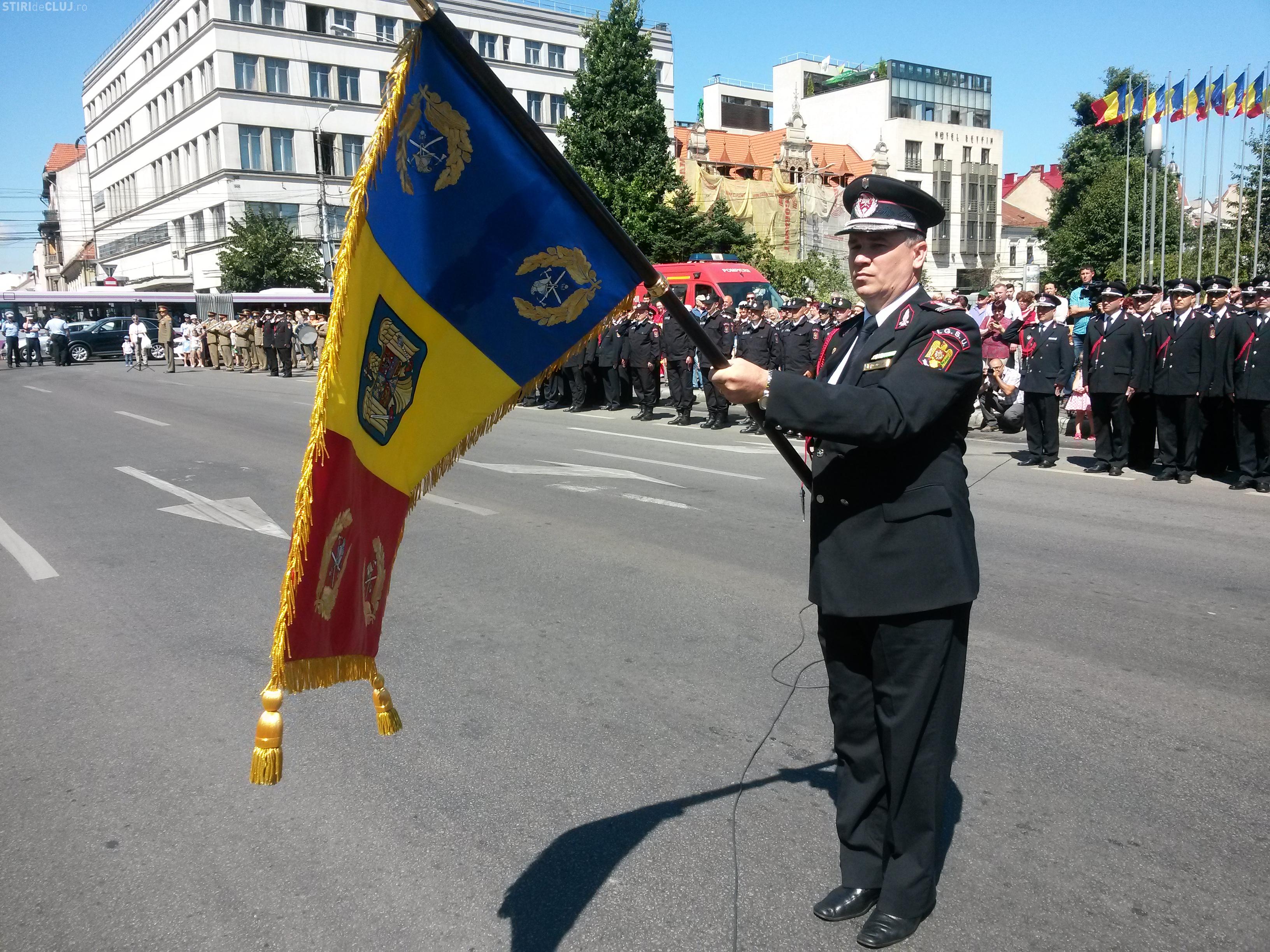 Eveniment special pentru pompierii clujeni. Au primit drapelul de luptă - VIDEO