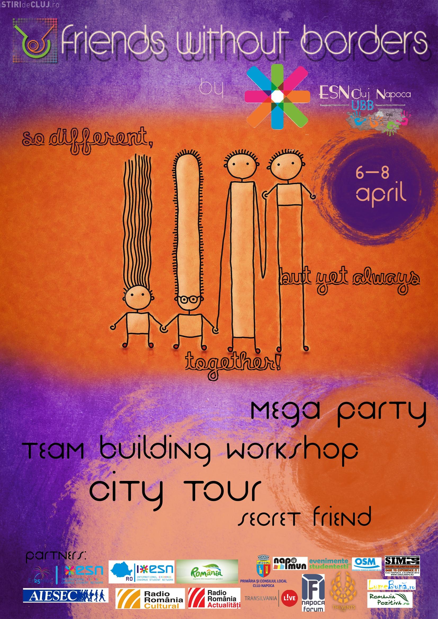 Evenimentul "Prieteni fara frontiere/ Friends without borders" este organziat de Erasmus Student Network, filiala UBB si are loc la Cluj-Napoca intre 6-8 aprilie.