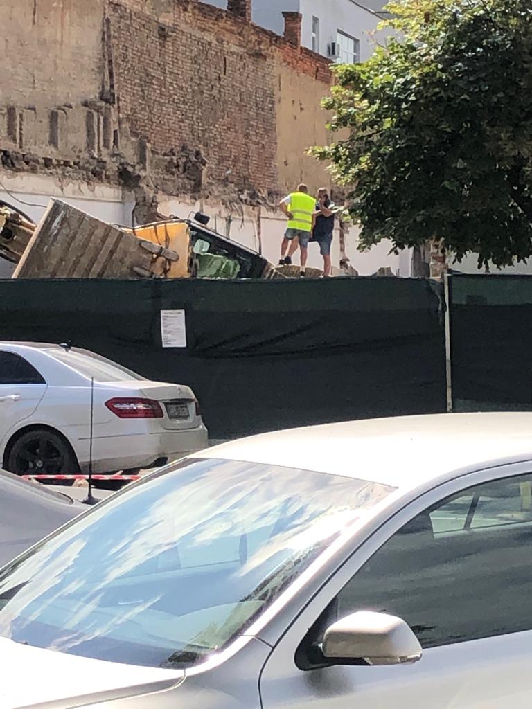 Din primele informații, structura unui beci vechi ar fi cedat sub greutatea utilajului.