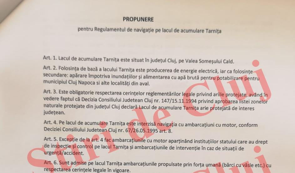 Pana cand vom vedea, insa pe Tarnita doar barci cu vasle va mai dura. Deocamdata, propunerea de regulament a fost trimisa la Oficiul de Capitanie Dej, care urmeaza sa faca modificari, daca este cazul. Pasii urmatori vor fi validarea si publicarea in Monitorul Oficial.