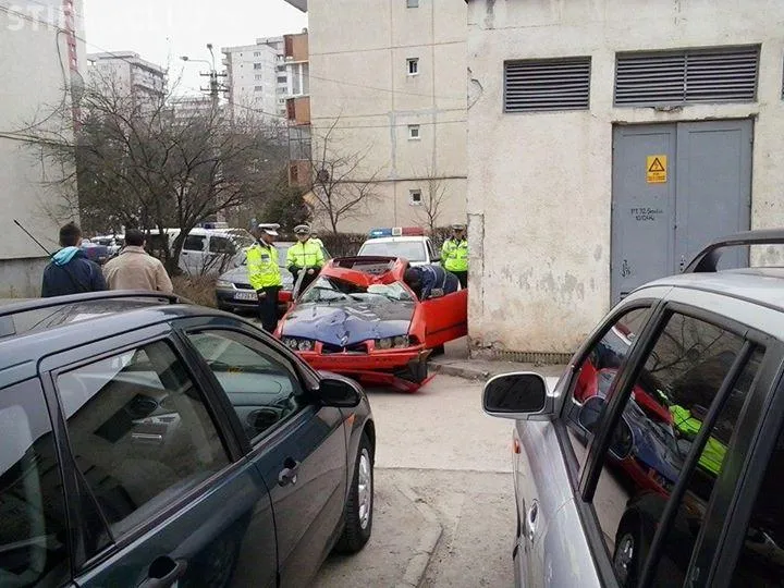 Șoferul a fugit de la fața locului, în ciuda faptului că mașina era făcută praf.