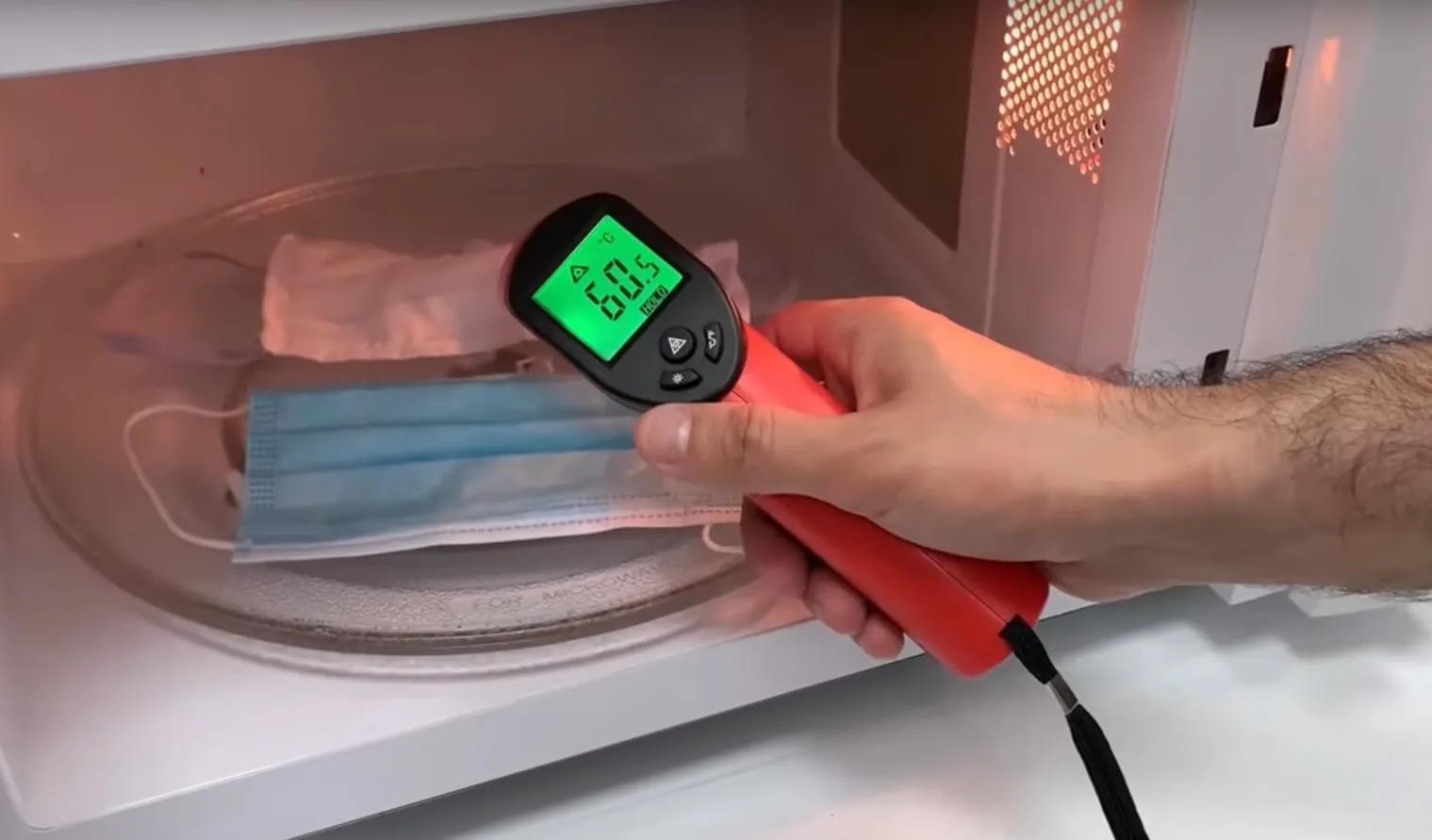 ”Pasul numărul unu este să înlăturăm partea metalică din măști. Pasul numărul doi este să scoatem măștile din baia de apă, le stoarcem și le expunem procesului de încălzire la cuptorul cu microunde. Timp de 15 minute, vom măsura temperatura din minut în minut, văzând dacă se atinge temperatura de 92 de grade Celsius la suprafața celor 2 măști. Este foarte important ca temperatura să fie menținută timp de 15 minute, pentru ca procesul să devină unul eficient”, a spus cercetătorul.