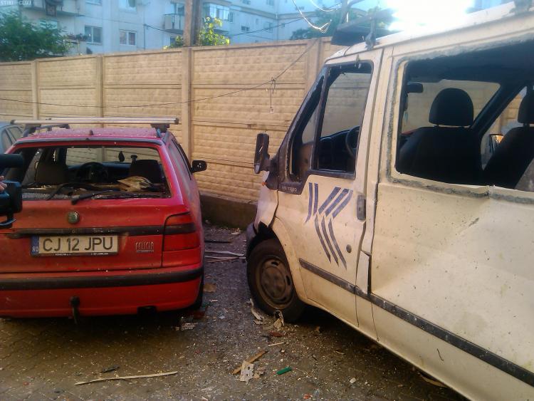 Autoturismele parcate în fața imobilului au fost și este afectate de suflul exploziei.
