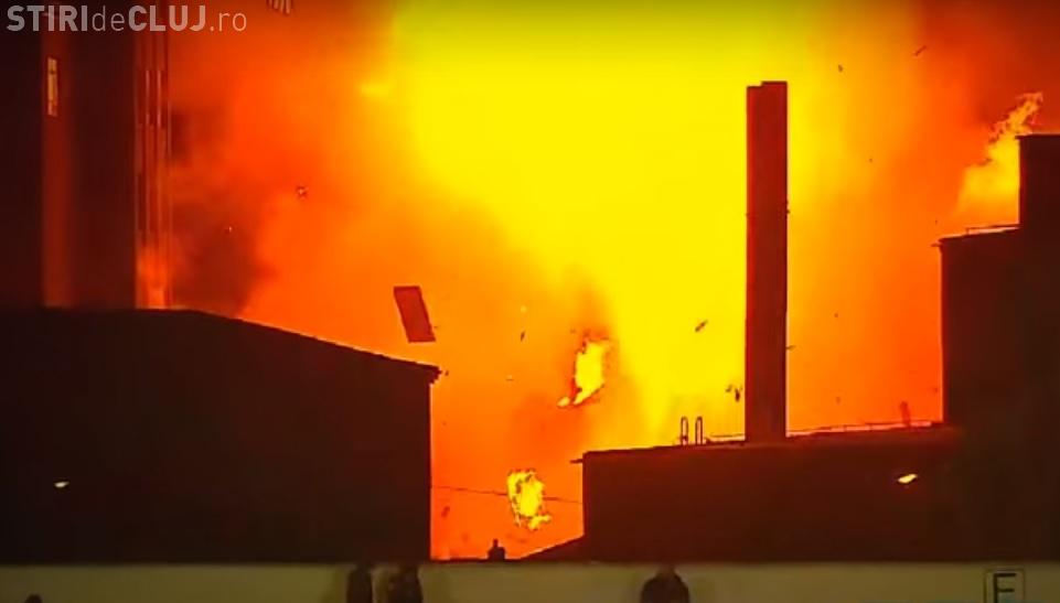 Explozia a fost surprinsă în direct de un post de televiziune care transmitea meciul de pe stadionul din Brașov.