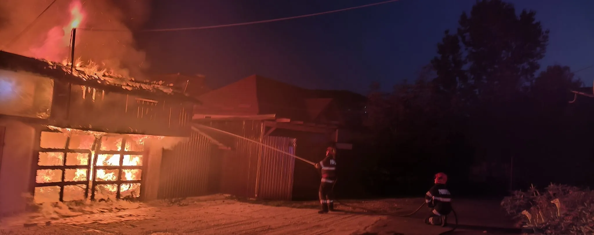 Explozie și incendiu: Două garaje au ars după ce o butelie a explodat/Pompierii clujeni s-au luptat ca focul să nu cuprindă un bloc aflat la câțiva metri