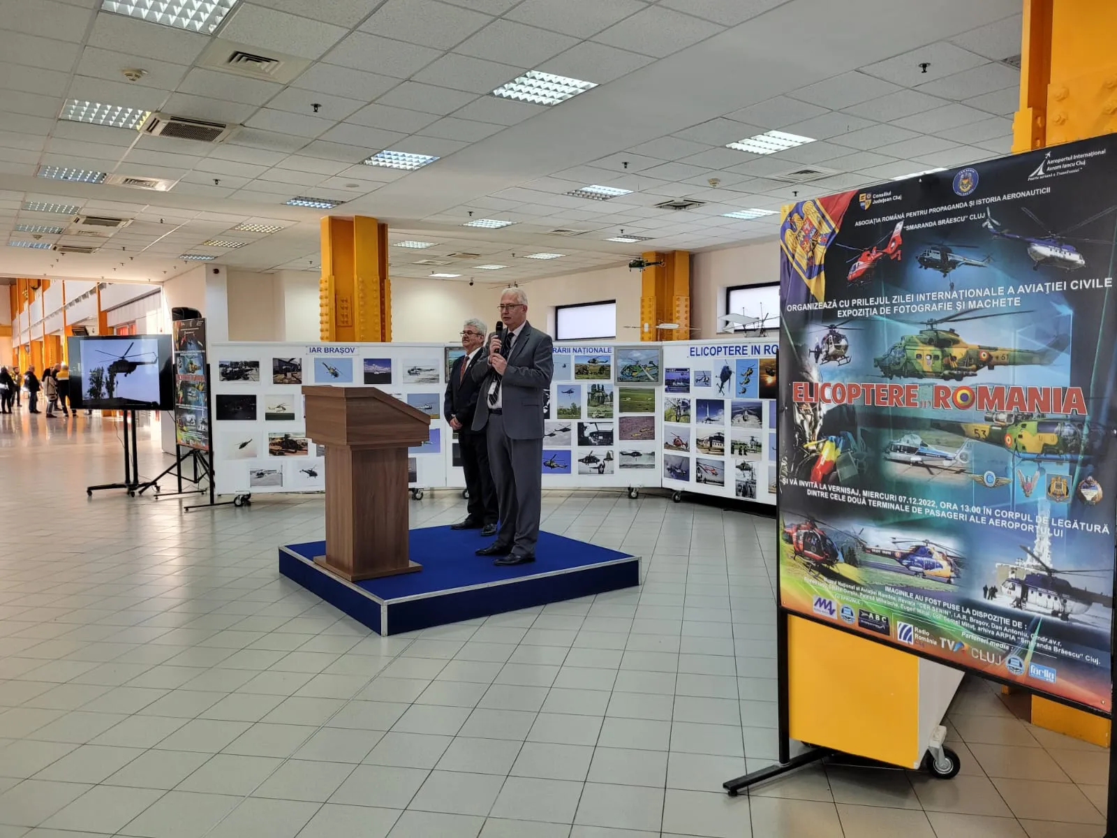 În incinta aeroportului a avut loc vernisajul unei expoziții de fotografii şi machete ”Elicoptere în România” care au evidențiat povestea fascinantă a producţiei aeronautice în România, aducând în atenția tuturor iubitorilor de aviație faptul că de-a lungul timpului, România a fost una din țările care a promovat industria aeronautică și mai ales a fost dezvoltată datorită inteligenței inginerești în domeniul aviației. Evenimentul s-a bucurat de prezența reprezentanților societății academice clujene, a cadrelor militare și a reprezentanților societăţilor cu activitate în domeniul aviaţiei civile din perimetrul aeroportuar.